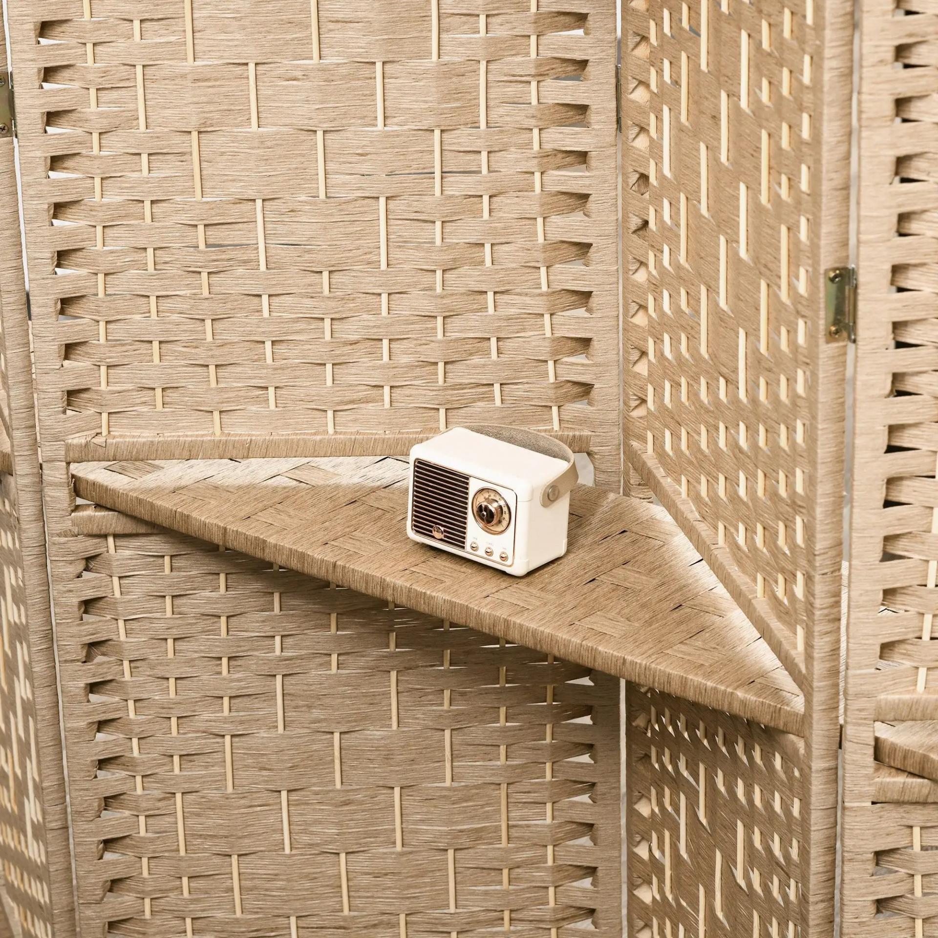 Biombo Separador de Ambientes 4 Paneles 160x170 cm con 2 Estantes de Exhibición Pantalla de Privacidad Plegable Natural