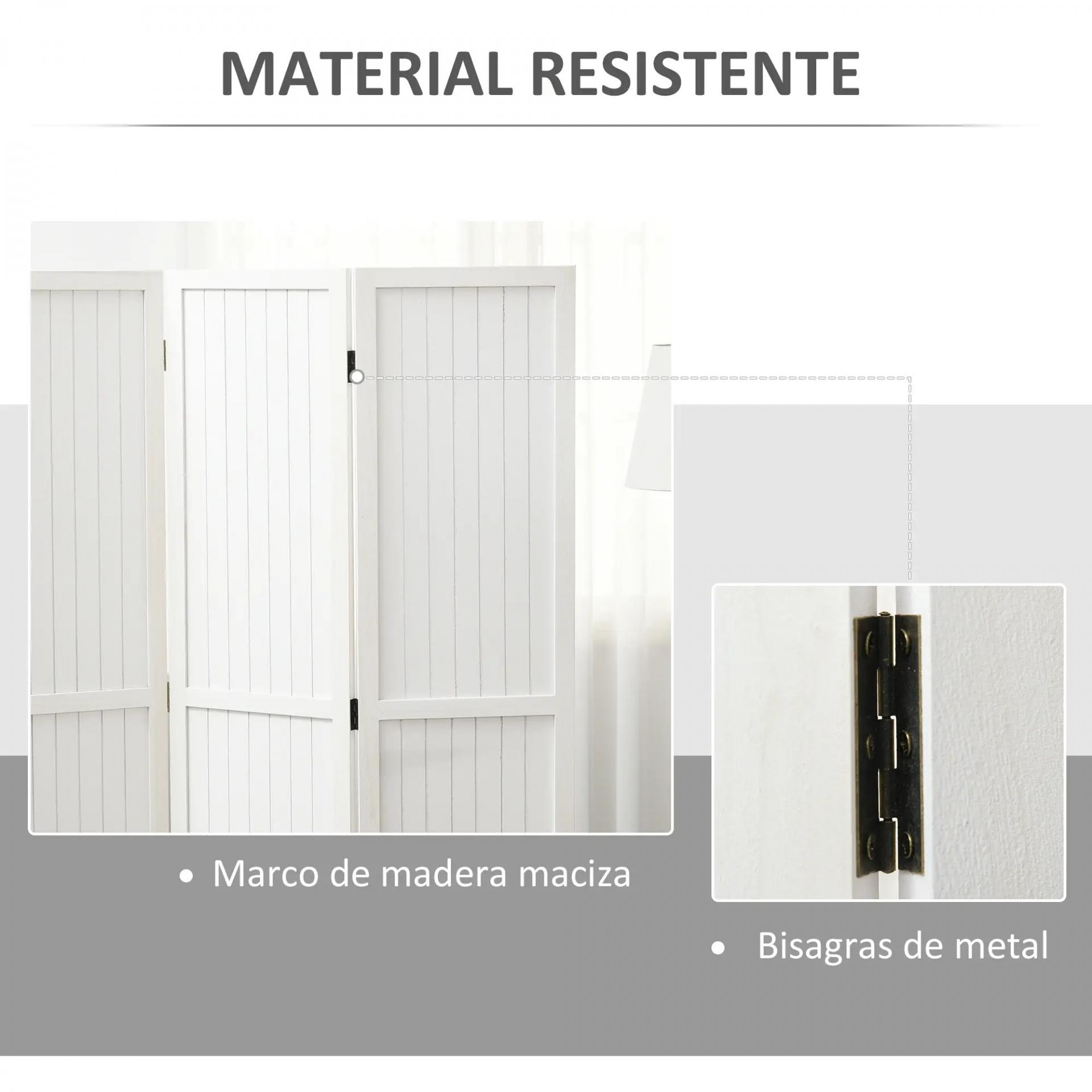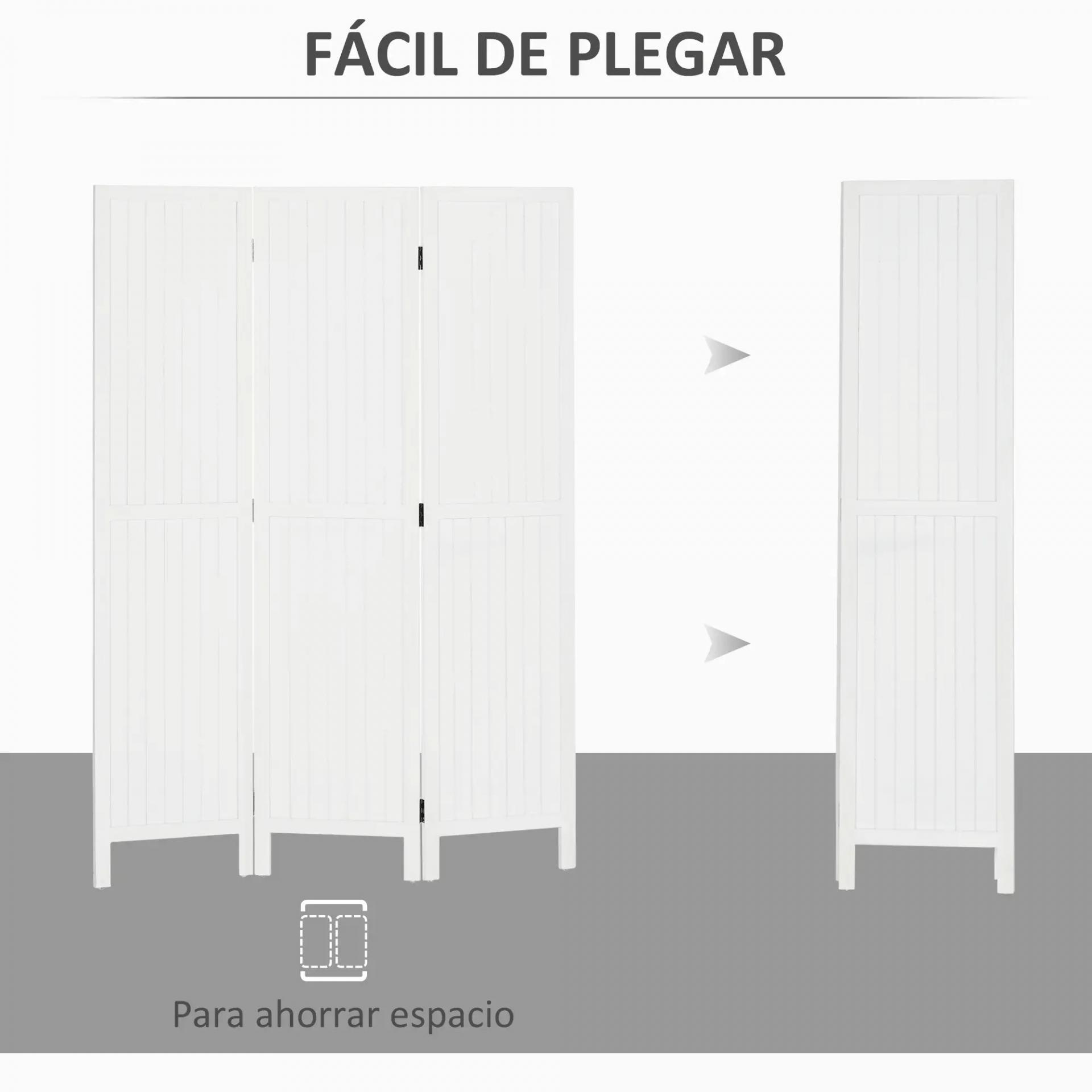 Biombo de 3 Paneles con Pantalla de Privacidad Divisor de Habitación Plegable 120x1,8x170 cm Estilo Rústico Blanco
