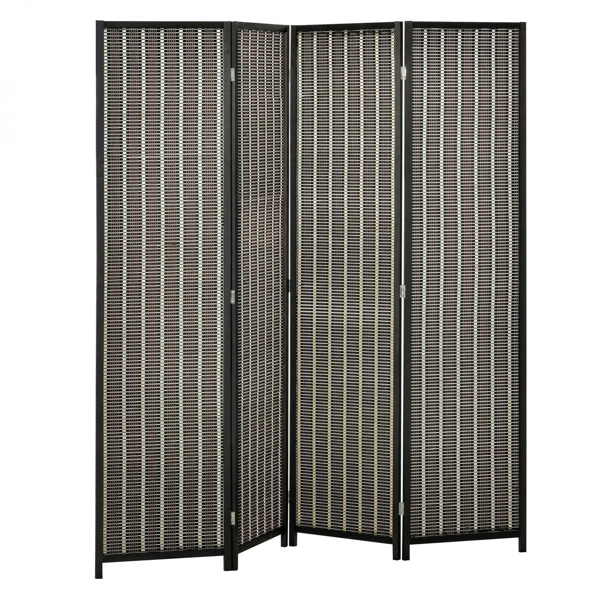 Biombo de 4 Paneles de Bambú Separador de Ambientes Plegable Divisor de Espacios para Dormitorio Salón 180x180x1,9 cm Marrón y Negro