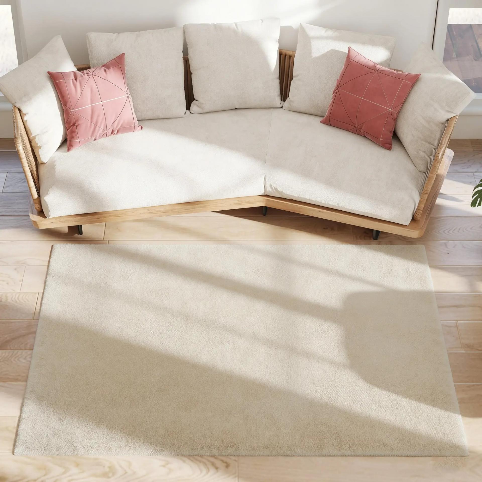 Alfombra Salón 160x230 cm Lavable en Lavadora Pelo Largo Estilo Moderno Tapete para Sala de Estar Dormitorio Crema