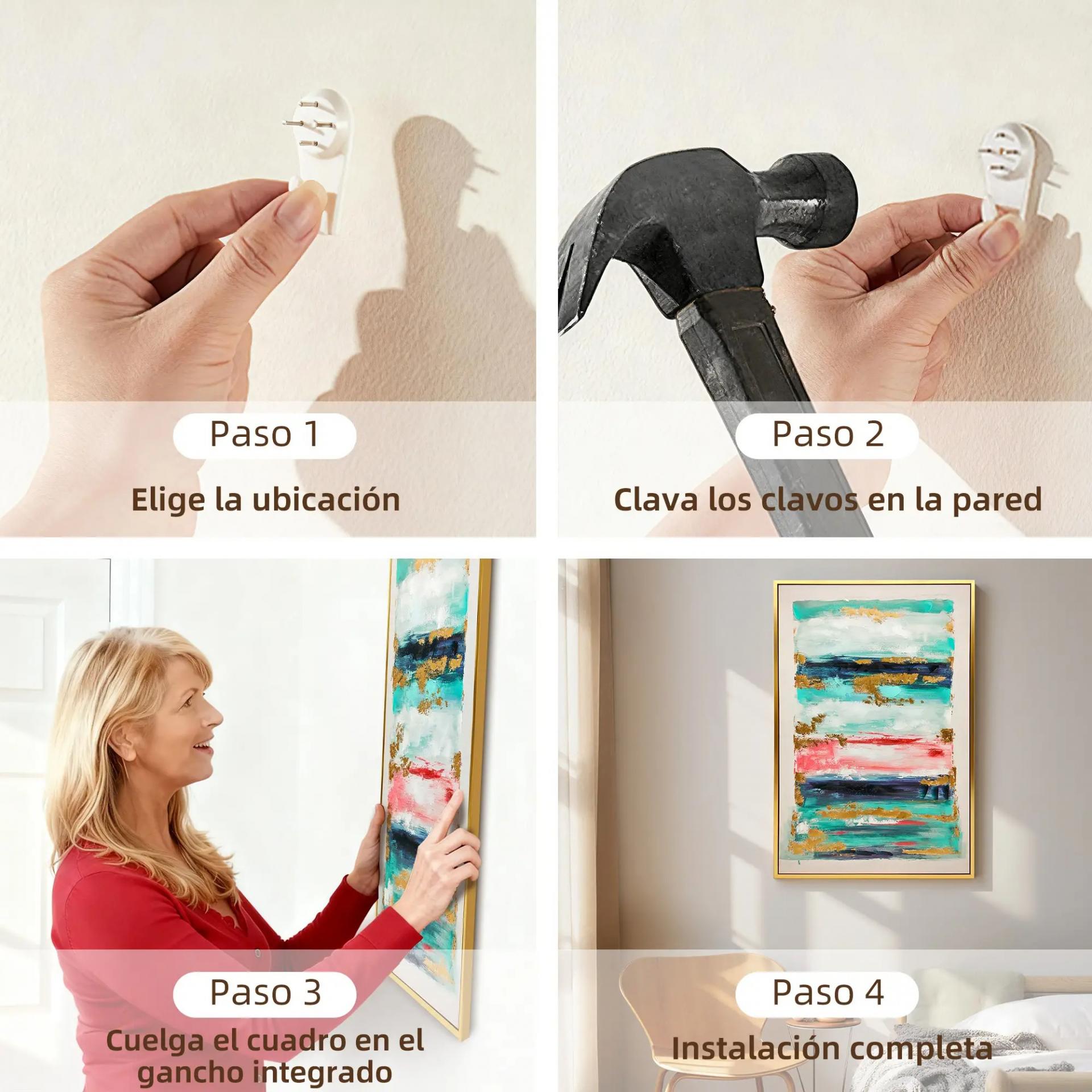 - - LISTO PARA COLGAR: El cuadro para dormitorio incluye cuatro colgadores de dientes de sierra y un kit de accesorios, permitiendo instalarlo fácilmente en el salón, dormitorio, despacho o pasillo sin necesidad de herramientas extra