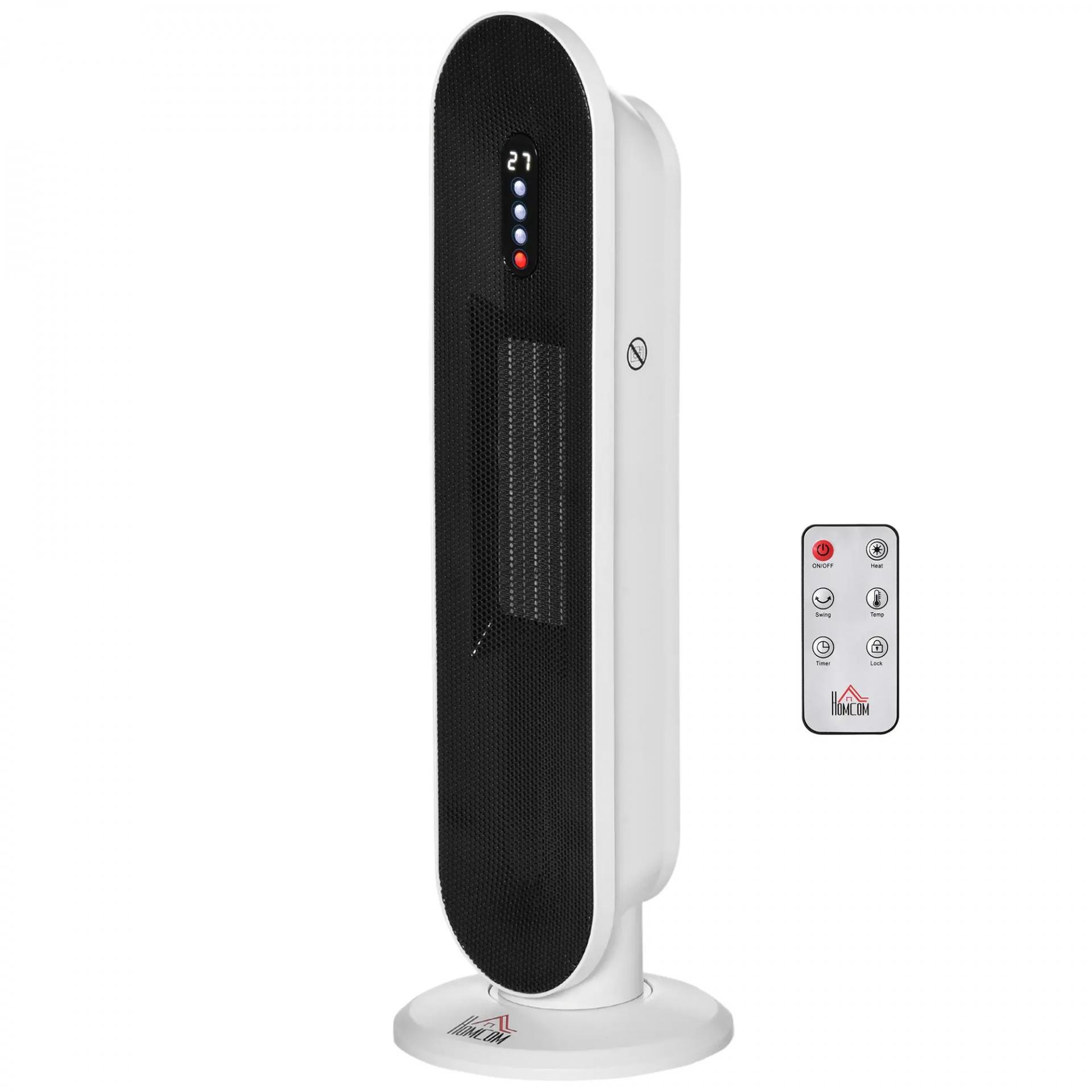 Calefactor Cerámico de Torre 1200W/2000W Calefactor PTC con Mando a Distancia Termostato Temporizador de 24H Oscilación 45° y Sistema Antivuelco para Sala de 20 m² Blanco y Negro
