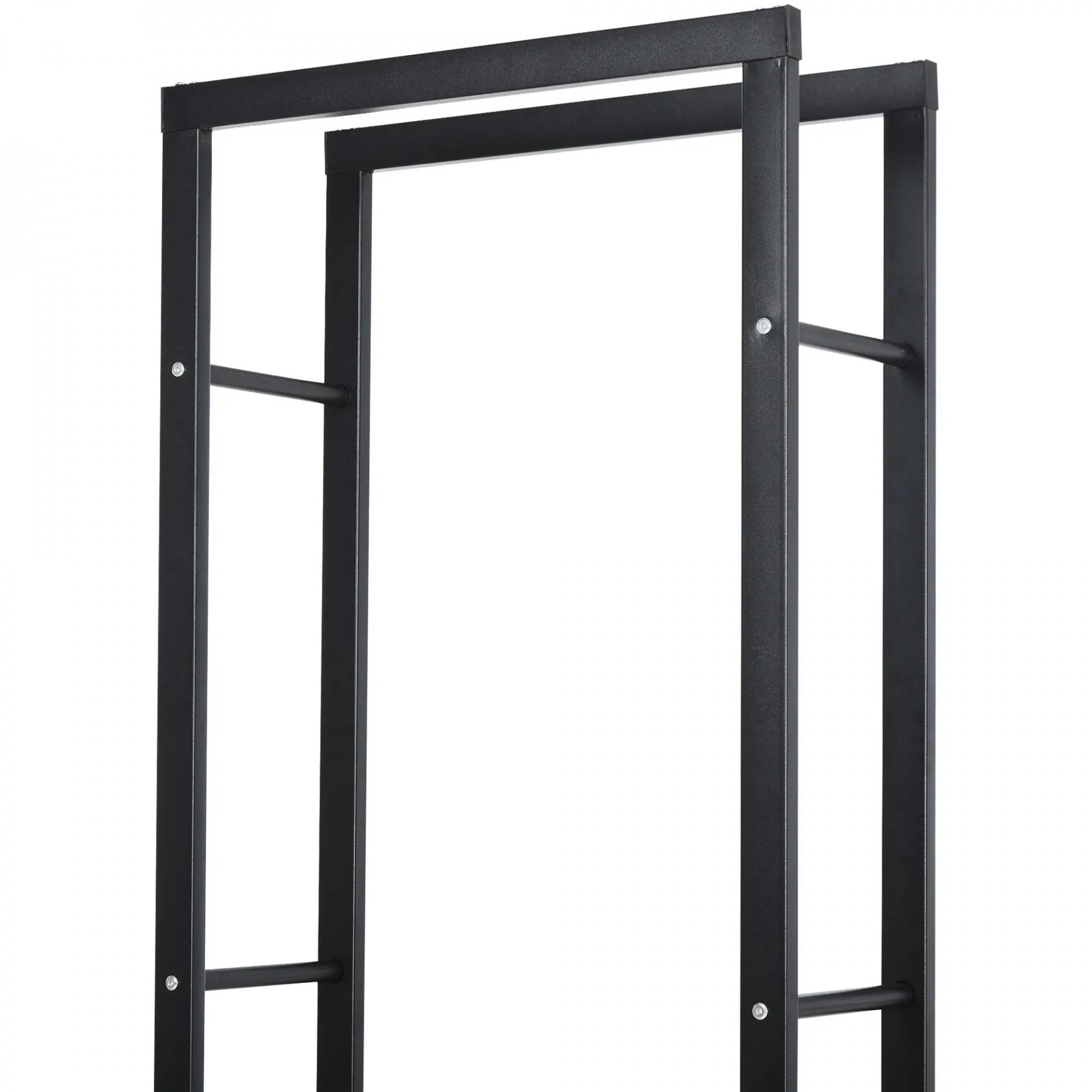 Soporte para Leña de Metal Estante de Leña Leñero de Exterior para Interior y Exterior Carga 100 kg 40x25x150 cm Negro