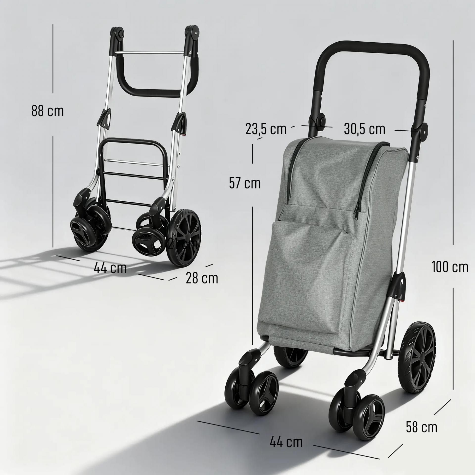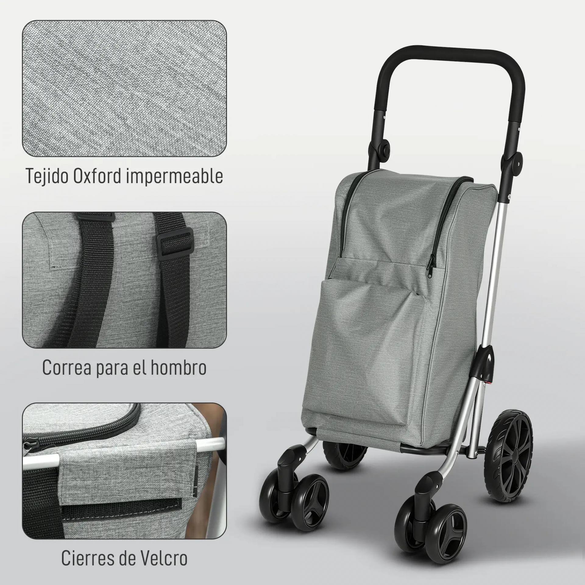 Carrito de Compra Plegable de 46 L Carro 3 en 1 con 6 Ruedas Bolsa Térmica y Asa Ajustable 44x58x100 cm Gris