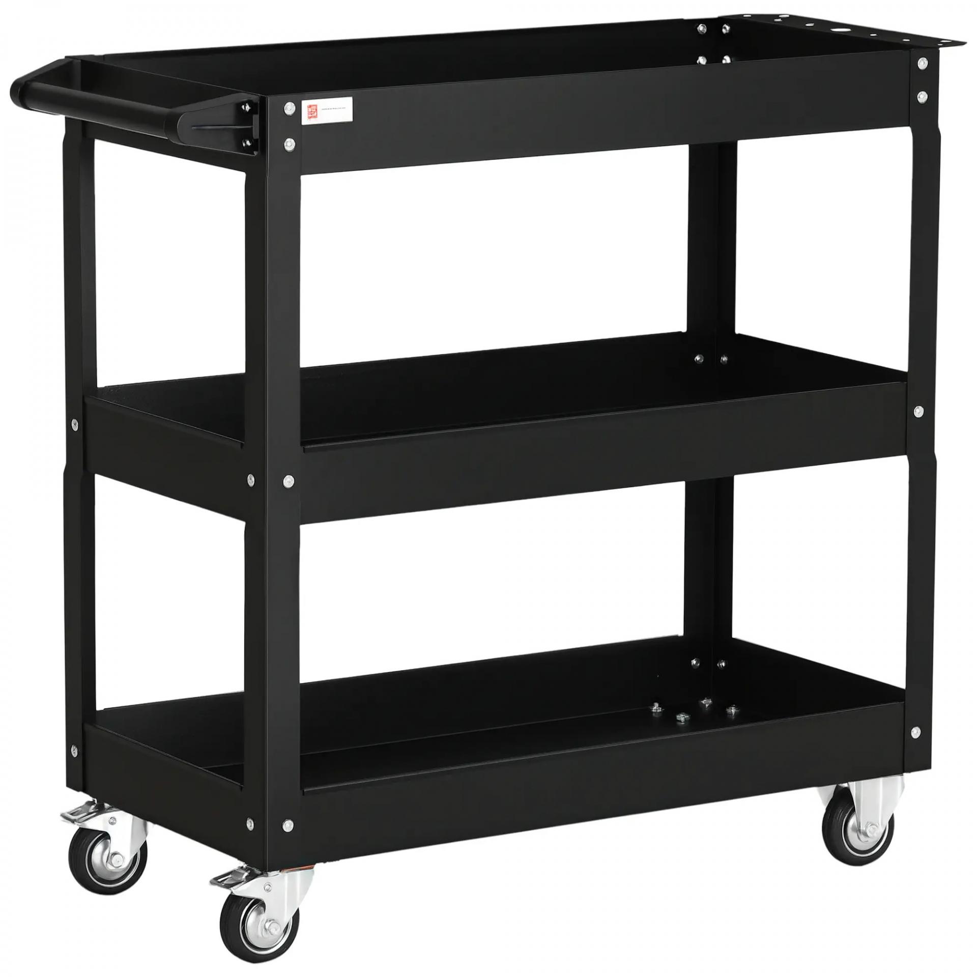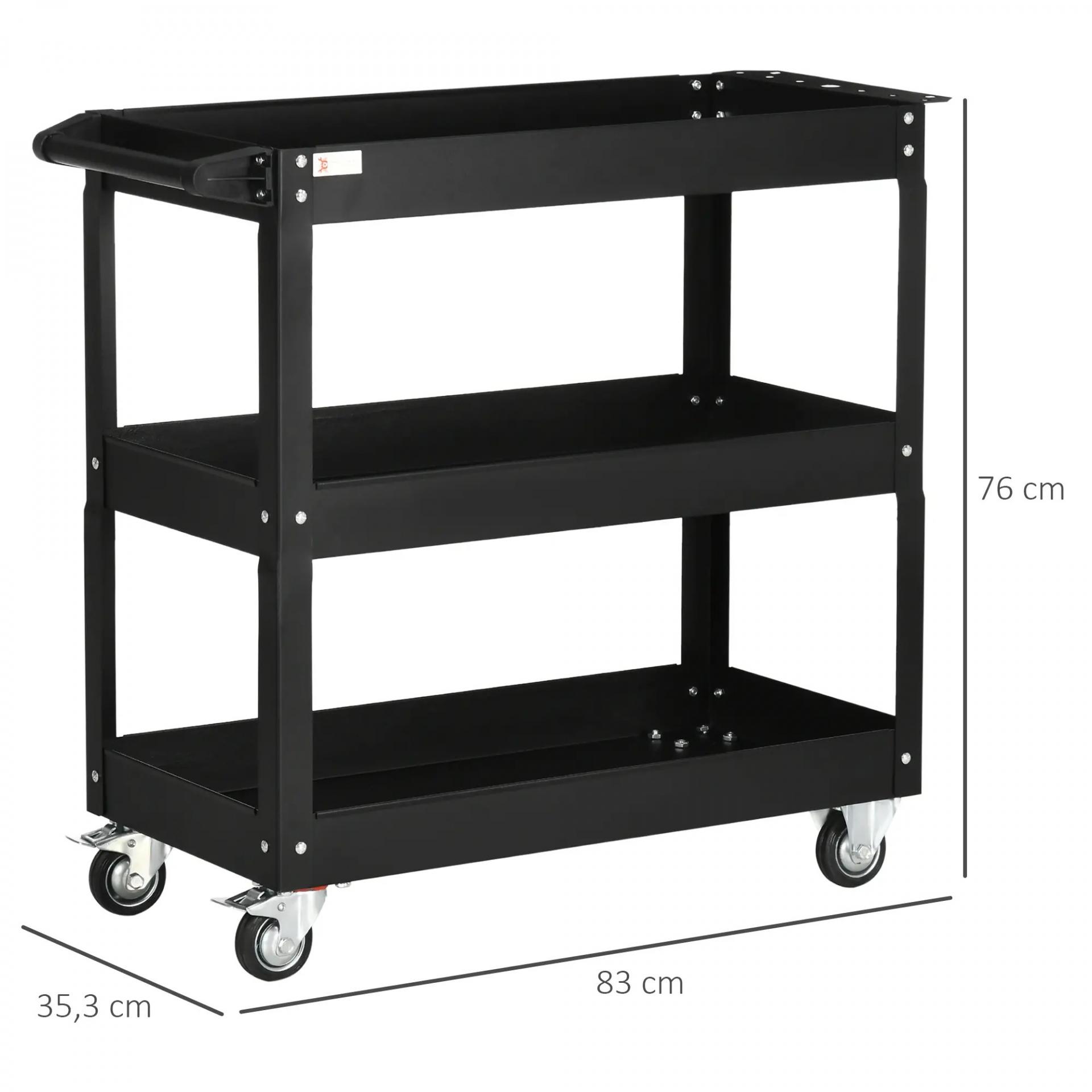 Carro de Herramientas con Ruedas 3 Estantes y Asa Lateral para Garaje Mecánico Hogar 83x35,3x76 cm Negro