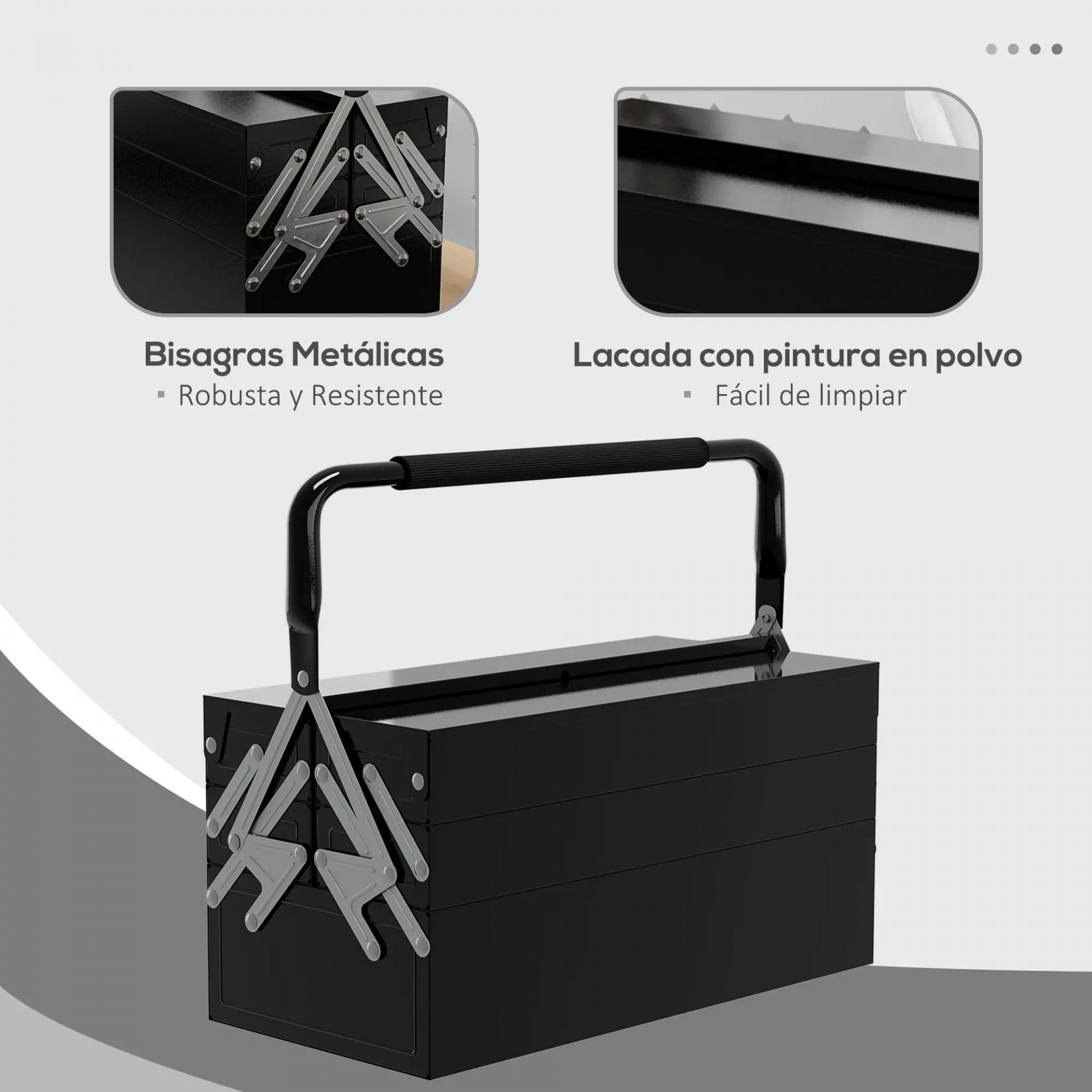 Caja de Herramientas Metálica Plegable con 5 Bandejas y Asa para Taller Garaje 45x20x34,5 cm Negro