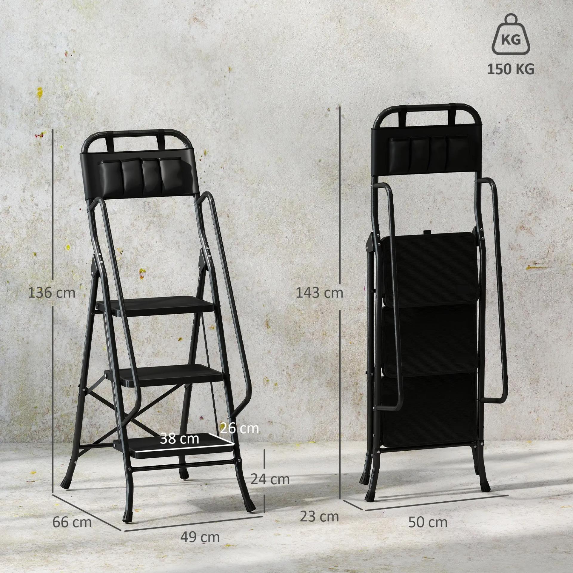 Escalera Plegable de 3 Peldaños con Bolsa de Herramientas Escalera de Tijera con Peldaños Anchos Antideslizantes Negro