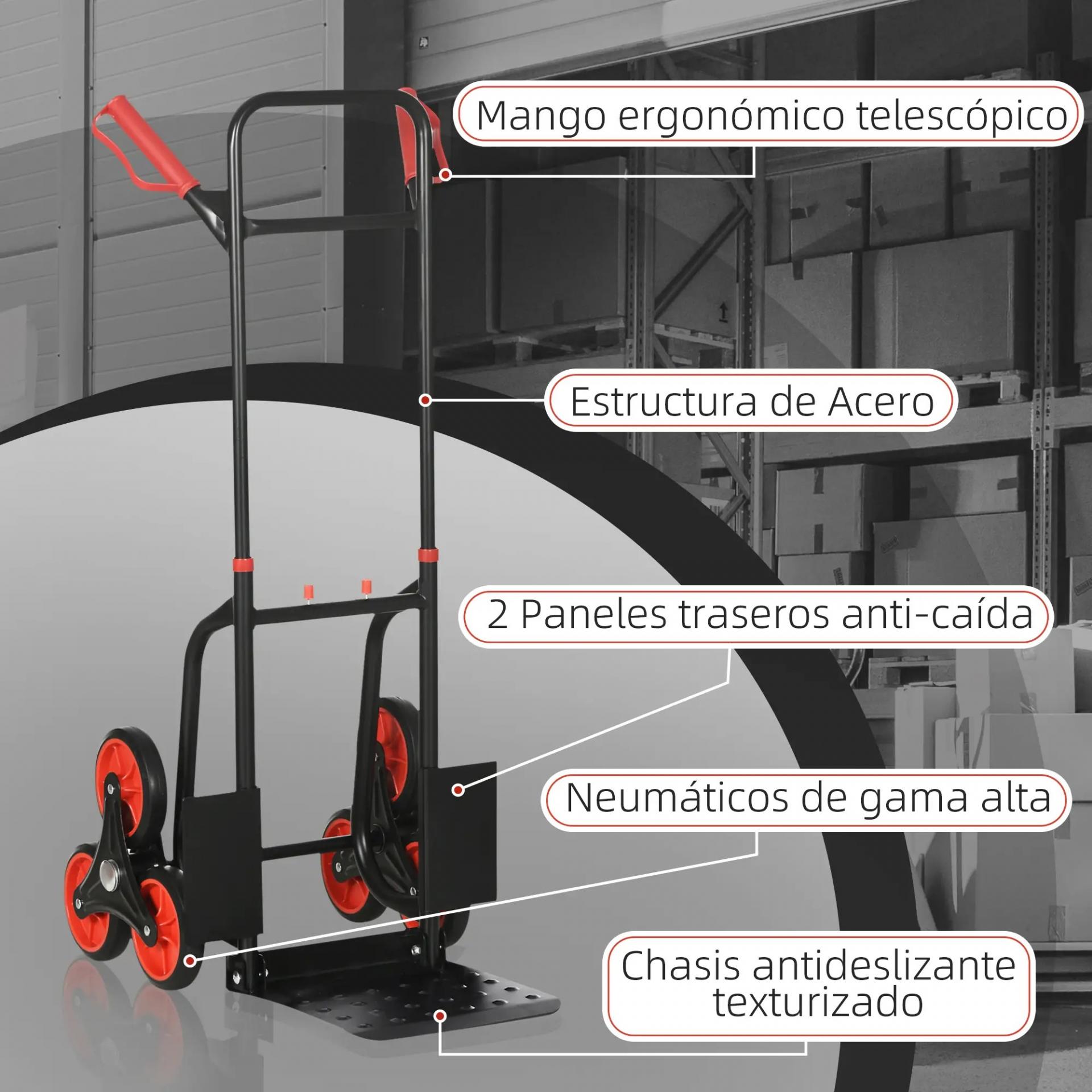 - CARRETILLA PLEGABLE PARA ESCALERAS. Gracias al diseño de sus 6 ruedas, subir y bajar por escaleras cosas pesadas resulta mucho más cómodo.