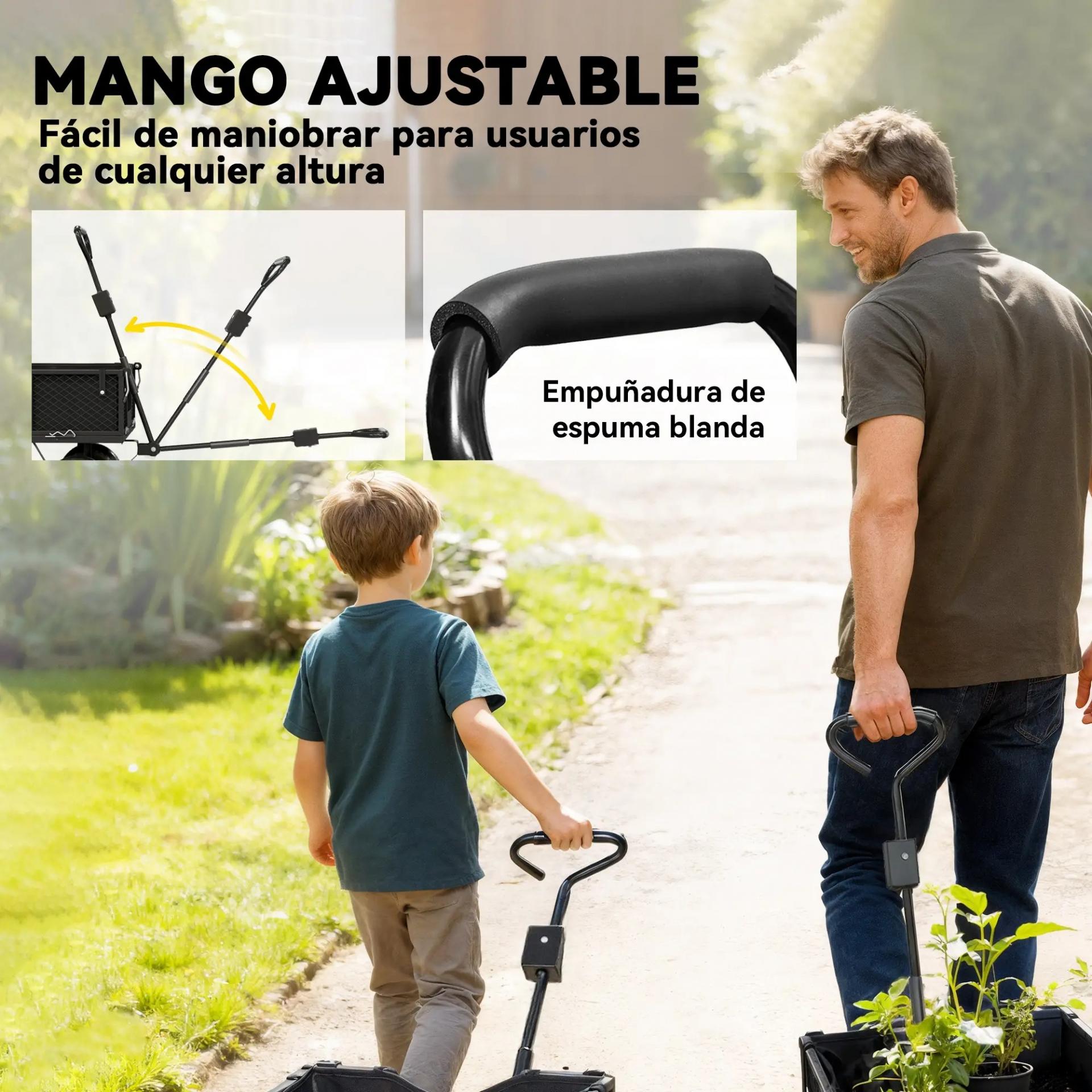 Carrito de Jardín con Ruedas Grandes Bolsa Impermeable Removible y Mango Giratorio Carga 300 kg 105x51x54 cm Negro