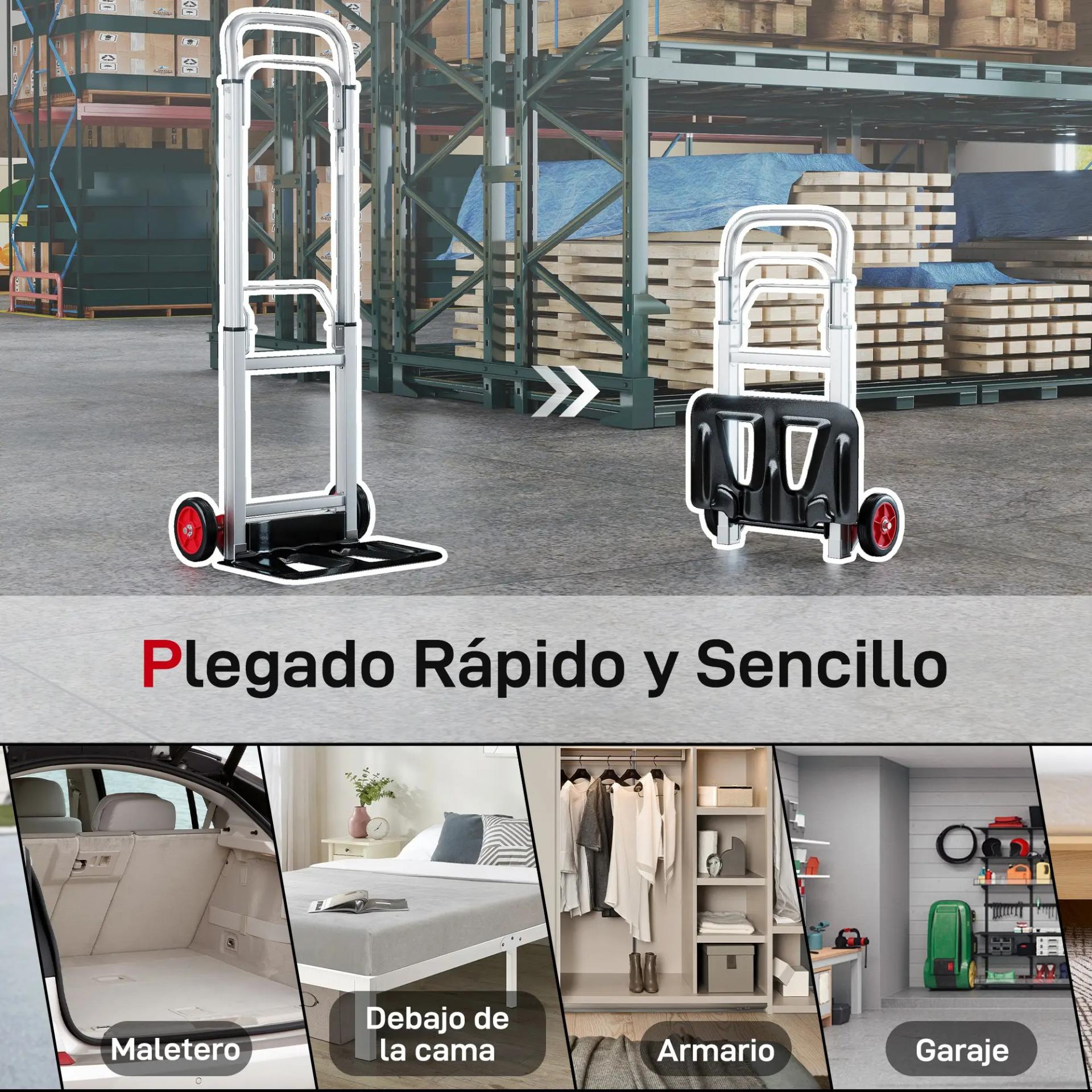 - - DISEÑO DE PLEGADO RÁPIDO: La carretilla plegable se pliega en segundos a 40x19x71 cm, permitiendo guardarla fácilmente en armarios, trasteros o en el maletero del coche sin ocupar apenas espacio