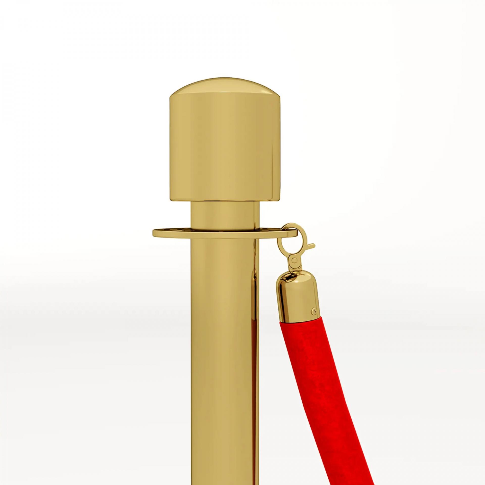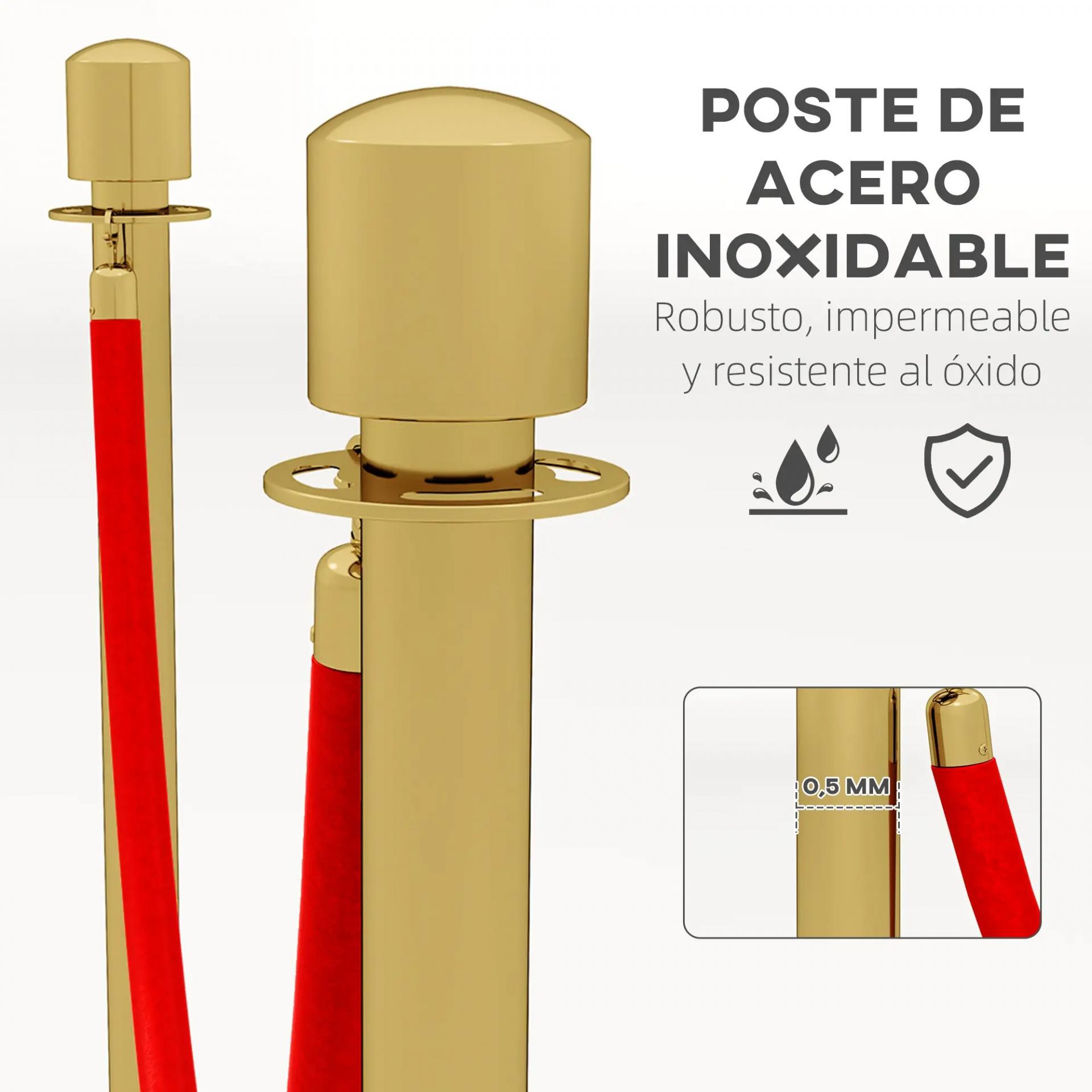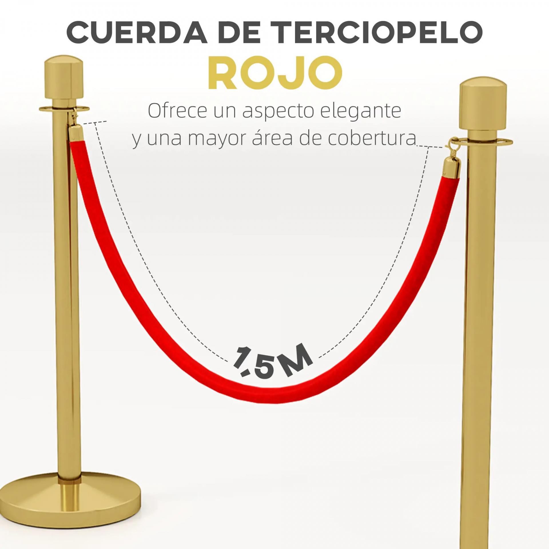 - BARRERA FIABLE: El poste dorado de acero inoxidable de este conjunto es resistente al agua y a la oxidación, ideal para uso en interiores y exteriores. La cuerda de terciopelo rojo de 1,5 m combina durabilidad y estilo, perfecta para cubrir grandes áreas