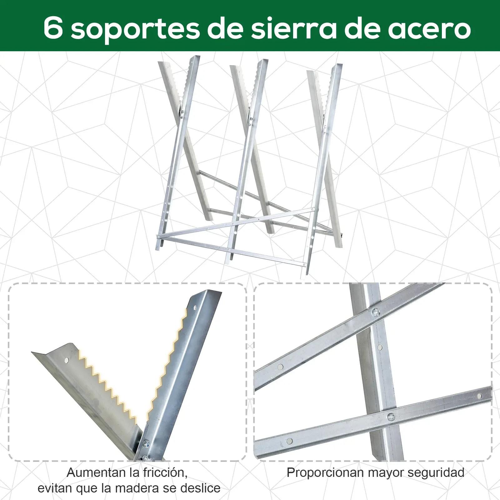- - BORDES CON DIENTES DE SIERRA: Los dientes de sierra del soporte cotar leña aumentan la fricción, evitando que la madera se deslice. Además, protegen las hojas de corte y mejoran la estabilidad con su diseño triangular