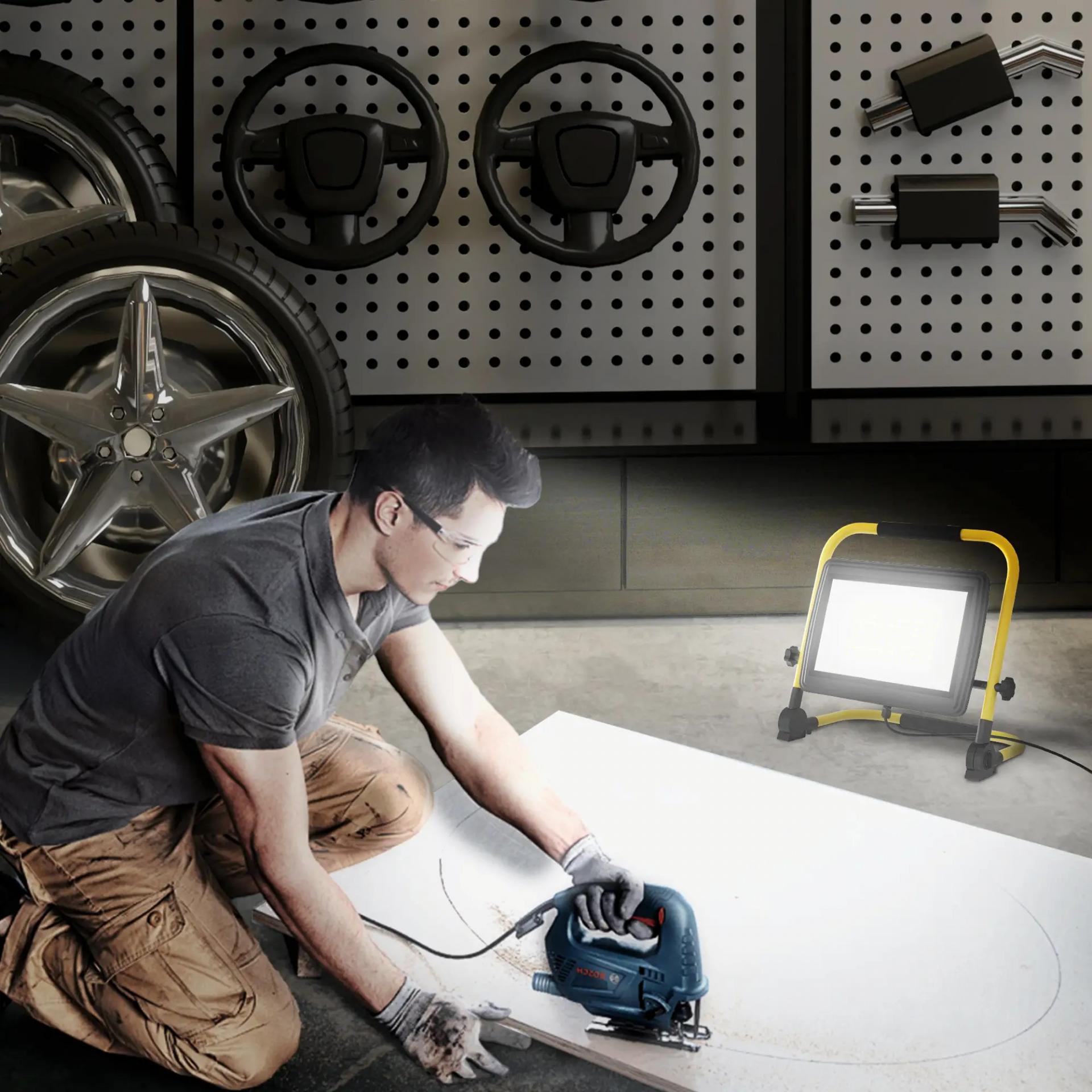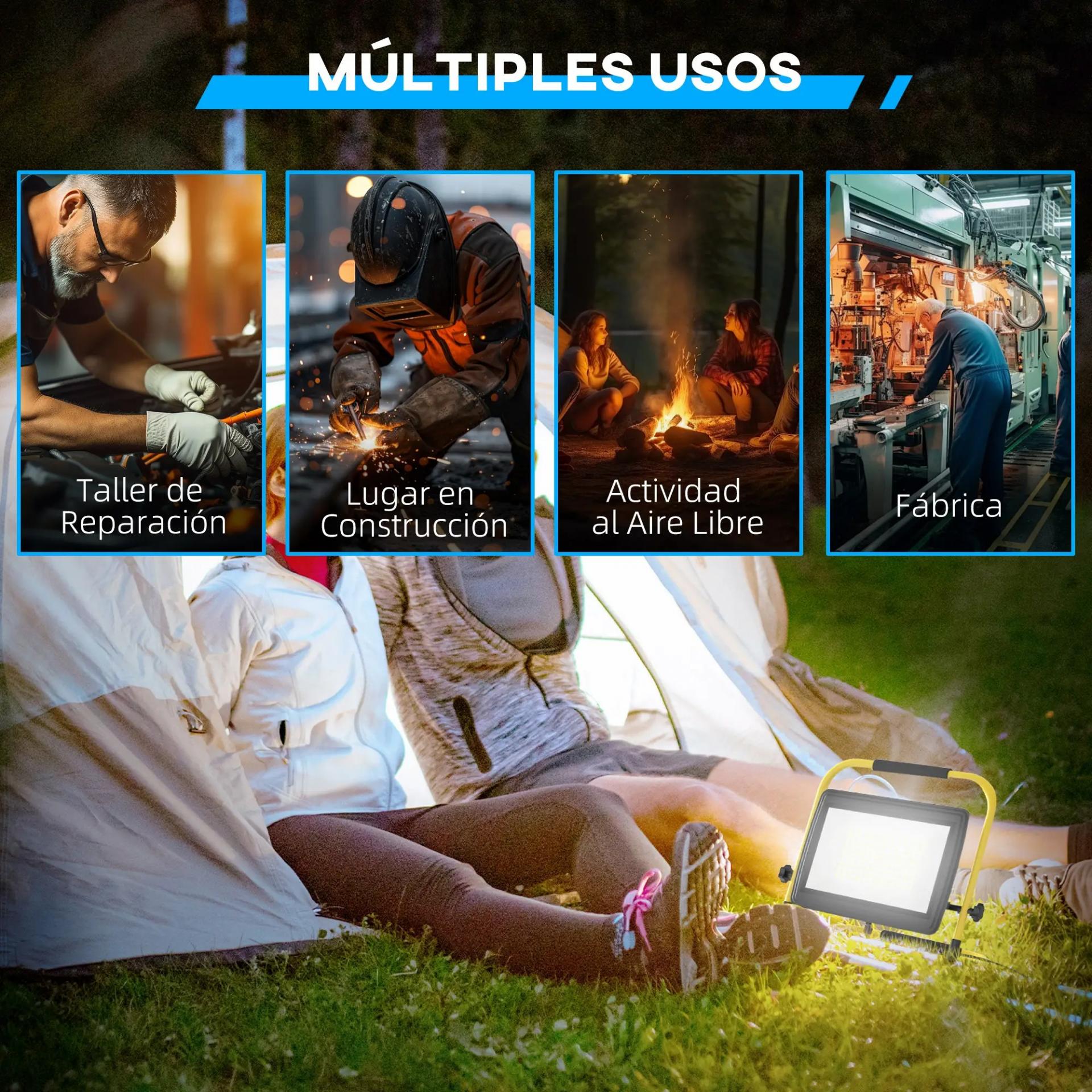 - ALTA LUMINOSIDAD: Este foco de trabajo proyector LED para construcción ofrece 8500 lúmenes y una temperatura de color de 6500K, perfecta para trabajos detallados en espacios con poca luz. Ideal para construcción, actividades al aire libre, fábricas y más