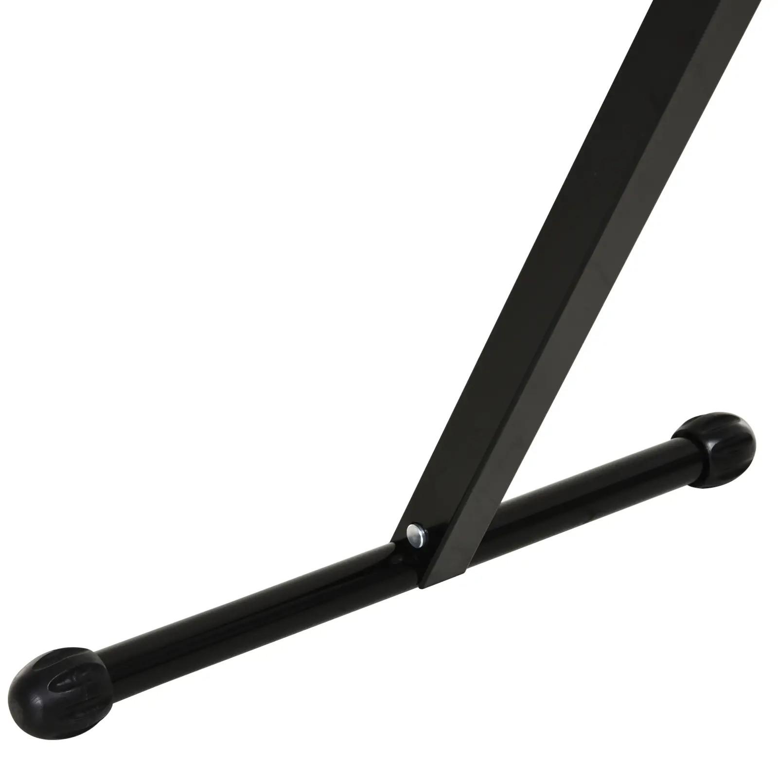 - - GRAN RESISTENCIA: Hecho de metal con recubrimiento de polvo resistente a la oxidación con un rodamiento de cilindros cromado, este caballete permite un uso diario a largo plazo. Las terminaciones de las patas con almohadillas protectoras ofrecen mayor firmeza y resistencia
