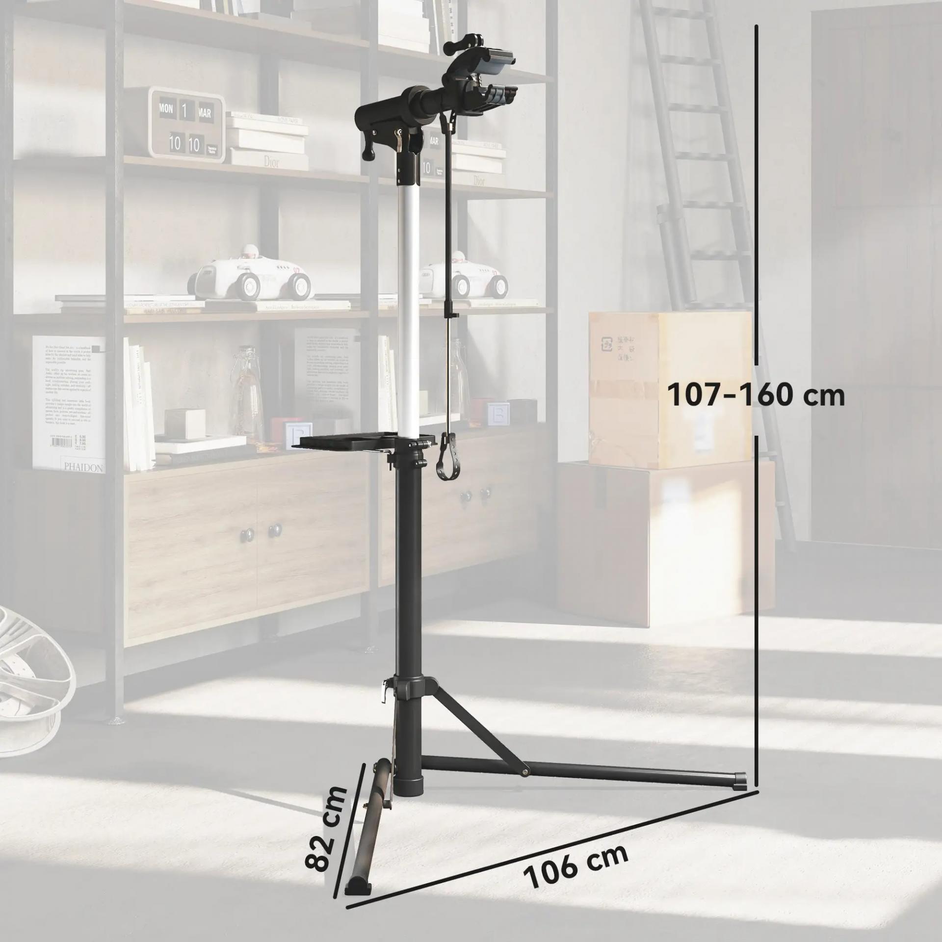 Soporte para Reparación de Bicicletas Ajustable con Bandeja Magnética y Altura Regulable 82x106x107-160 cm Negro