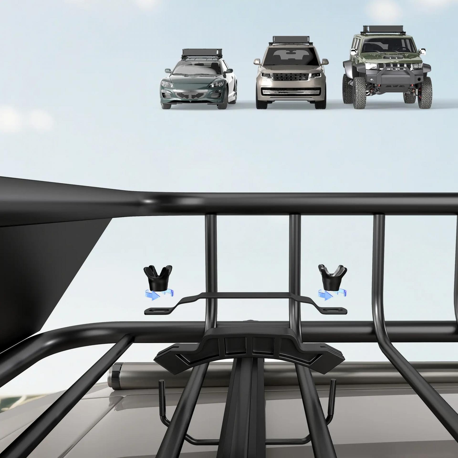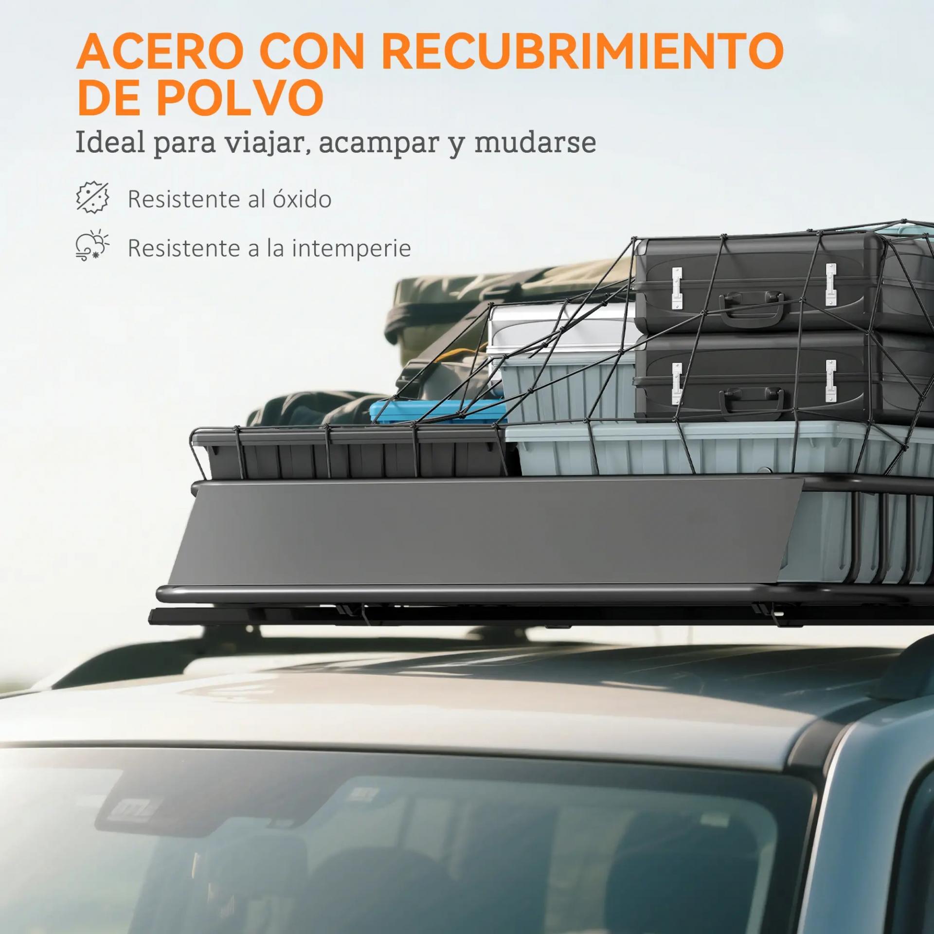 - - CONSTRUCCIÓN DE ACERO RESISTENTE: Cesta de techo para coche de acero de alta resistencia con recubrimiento en polvo, diseñada para resistir óxido, corrosión y clima adverso, ideal para cualquier aventura