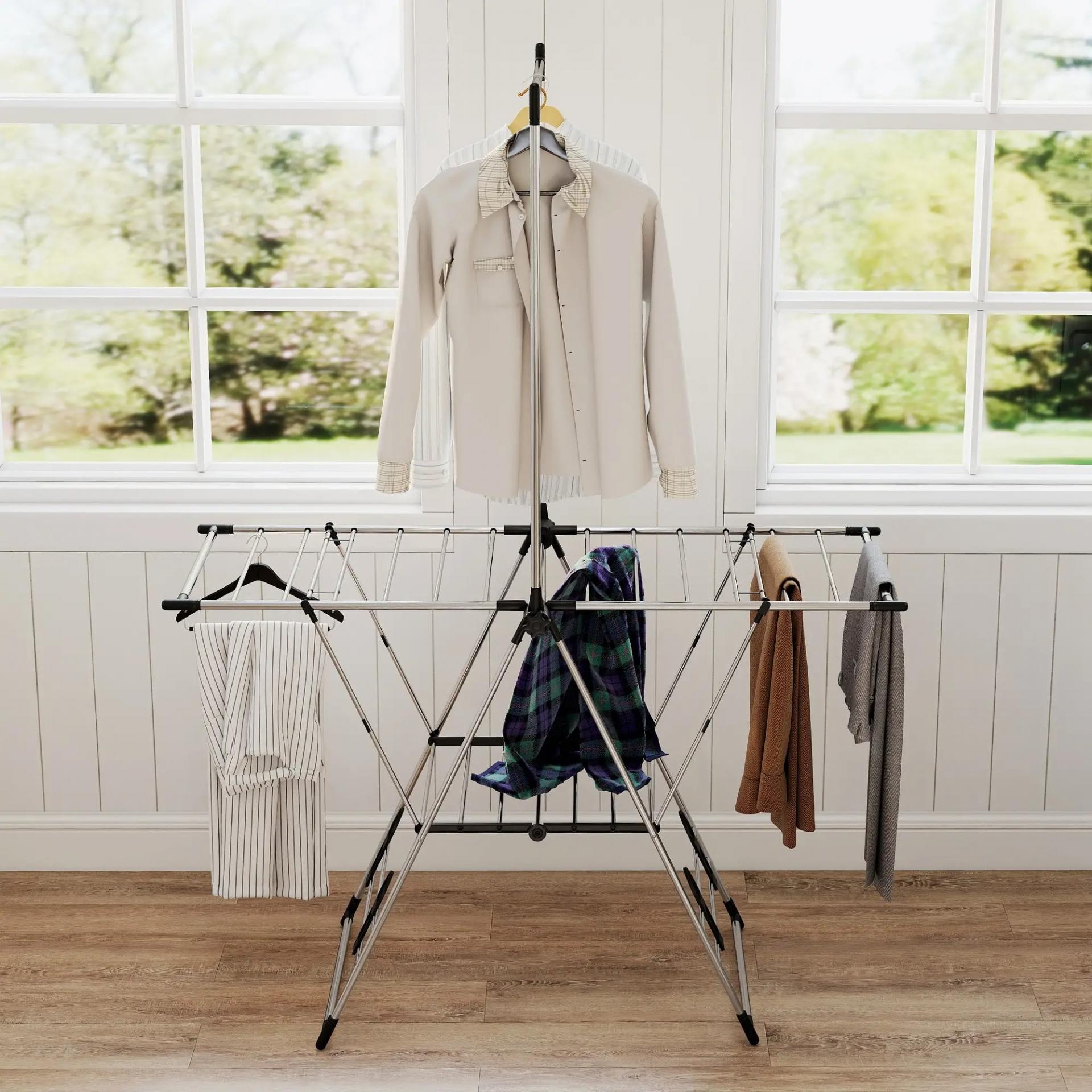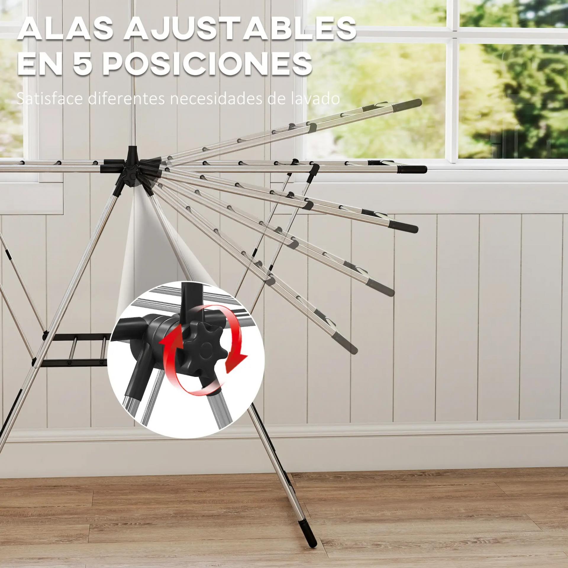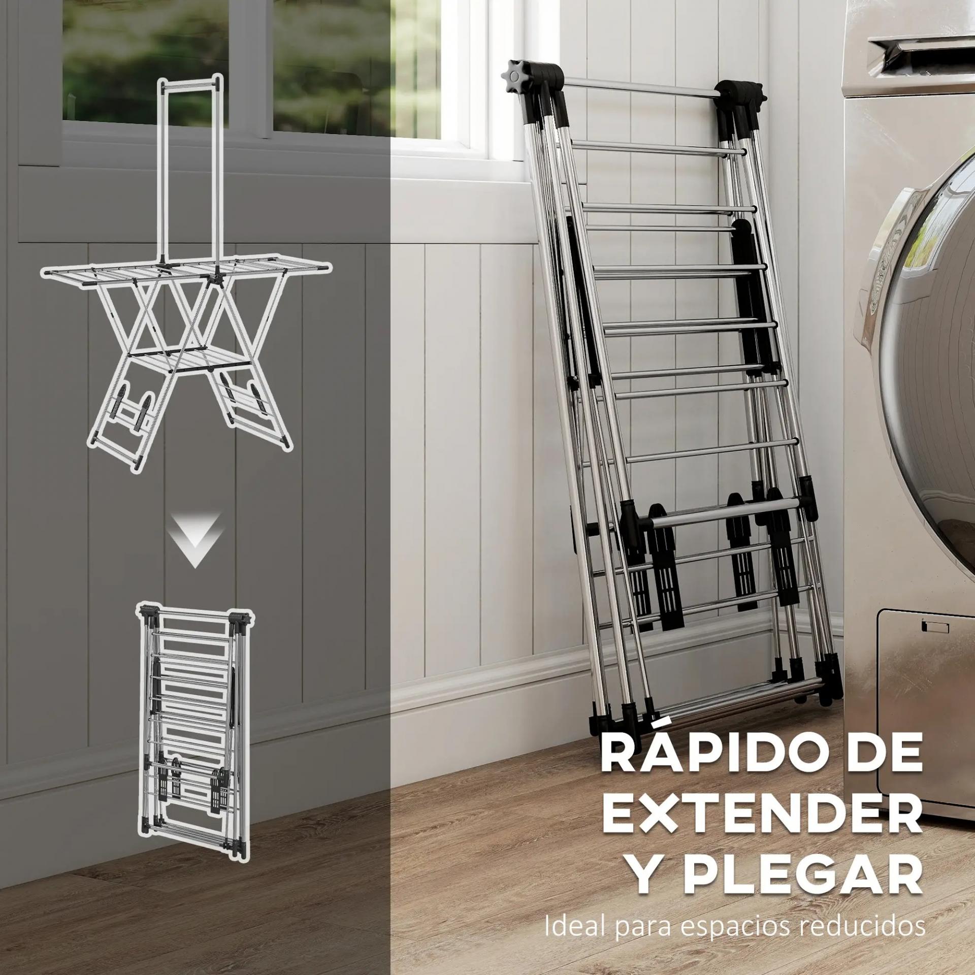 - - TENDEDERO ESTABLE Y RESISTENTE: Fabricado en acero inoxidable 201, este tendedero plegable tipo A soporta hasta 25 kg de ropa mojada, garantizando firmeza y seguridad incluso cuando lo cargas con prendas más pesadas
