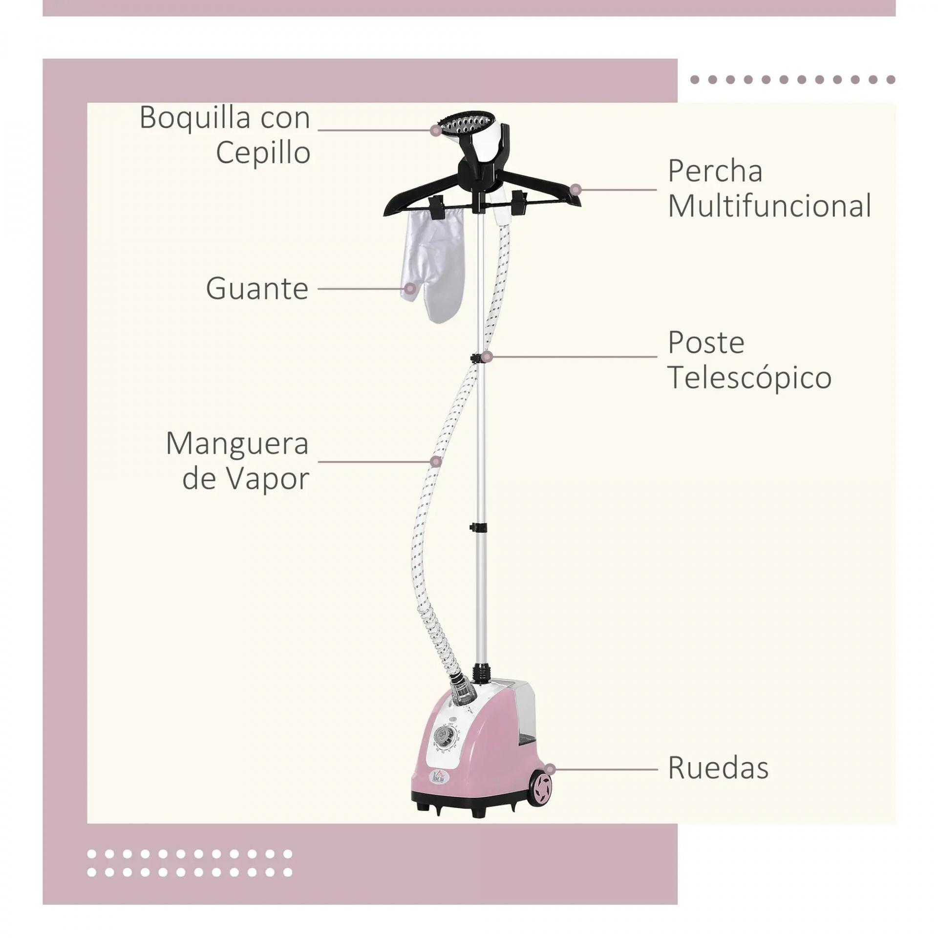 Plancha Vertical 1800W 1,4 L con Temperatura Ajustable en 11 Niveles y Barra Telescópica para Hogar Oficina Rosa
