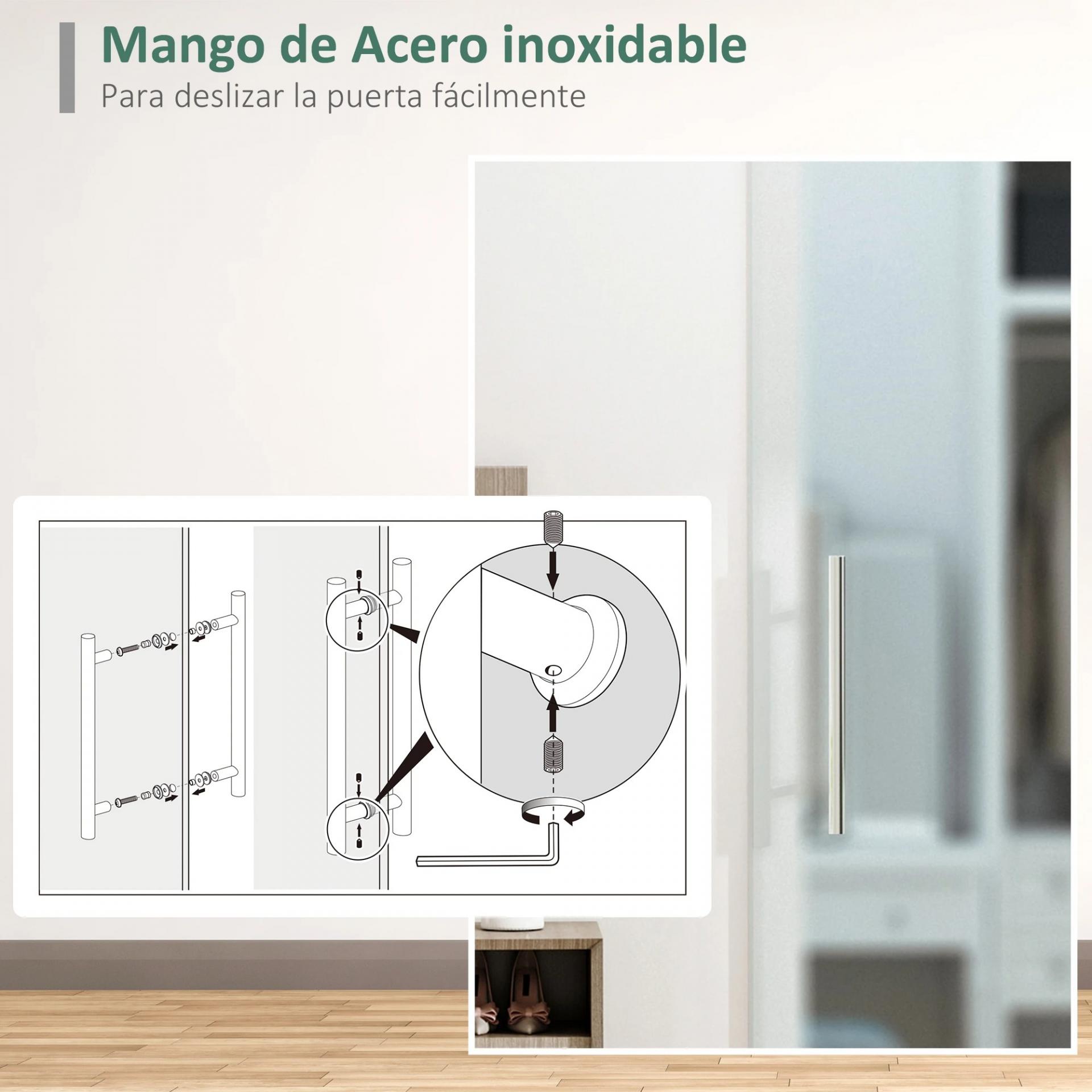 - - CRISTAL TRANSLÚCIDO: Esta puerta corredera deja pasar la luz a la vez que no podemos ver claramente a través de él para mayor privacidad