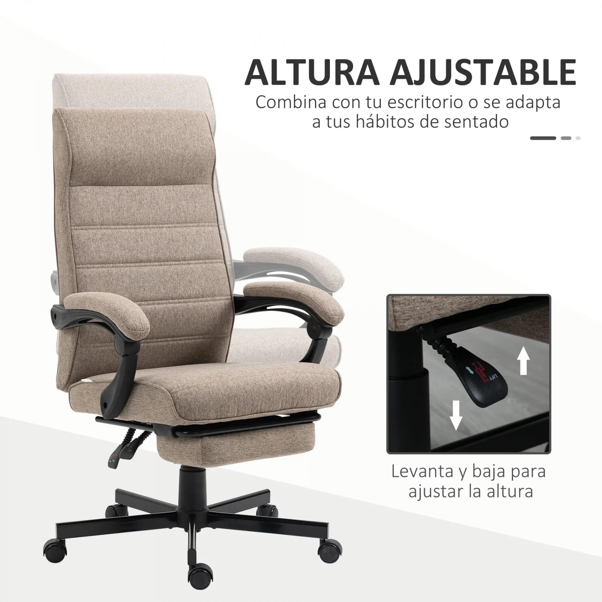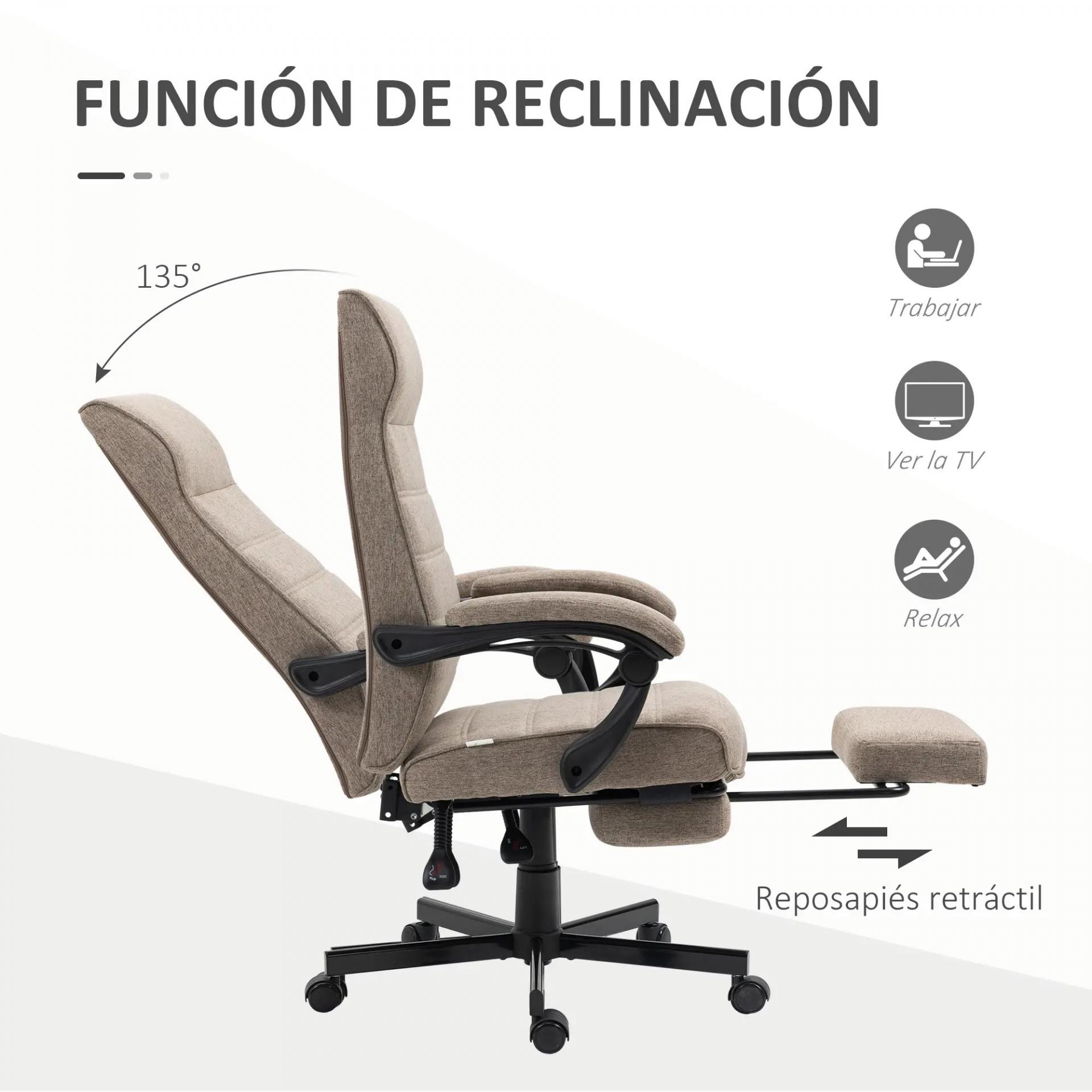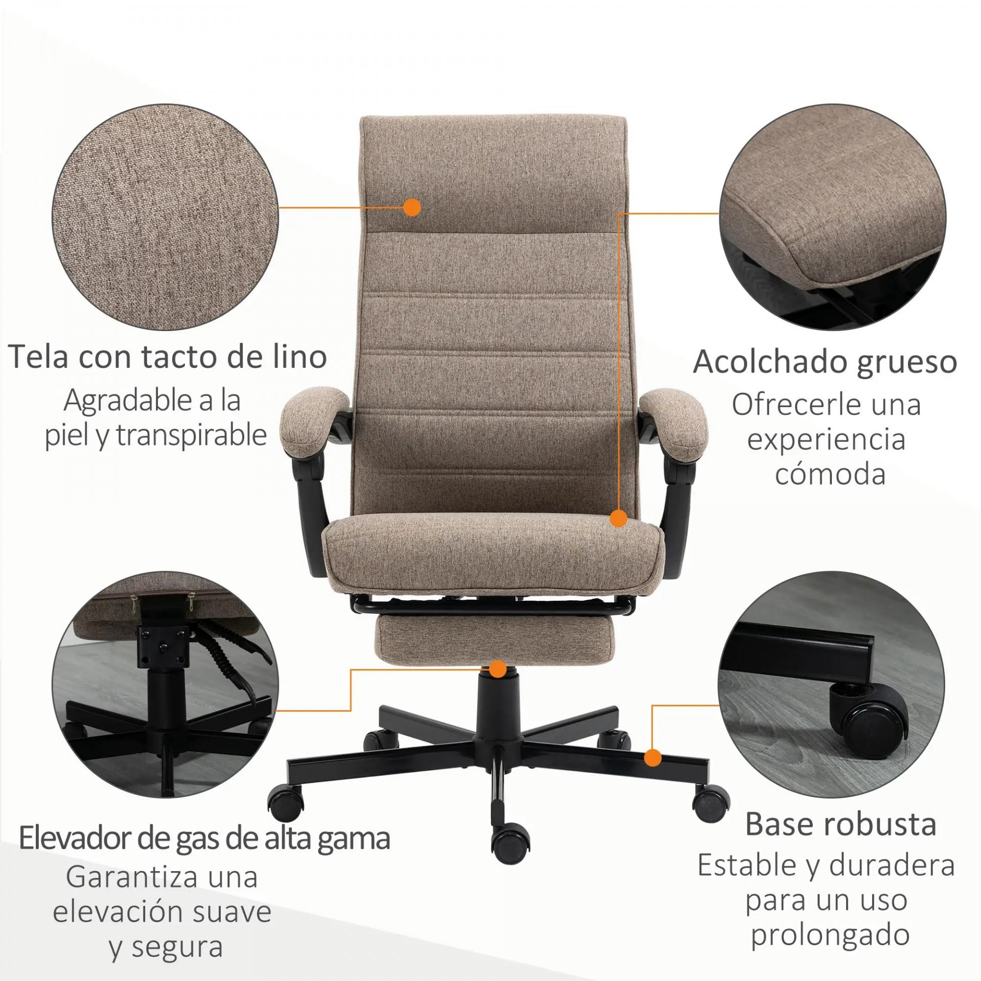 Silla de Oficina Reclinable con Altura Ajustable Reposabrazos y Reposapiés Retráctil 68x67x106-114 cm Marrón