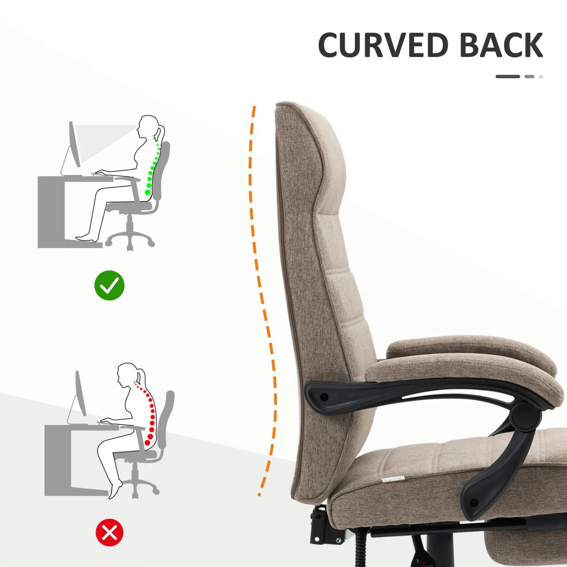- DISEÑO CÓMODO: El diseño curvo del respaldo alto y el asiento acolchado tapizado en agradable tejido de poliéster con tacto lino, hacen de esta silla de despacho un asiento cómodo e ideal para pasar horas sentado