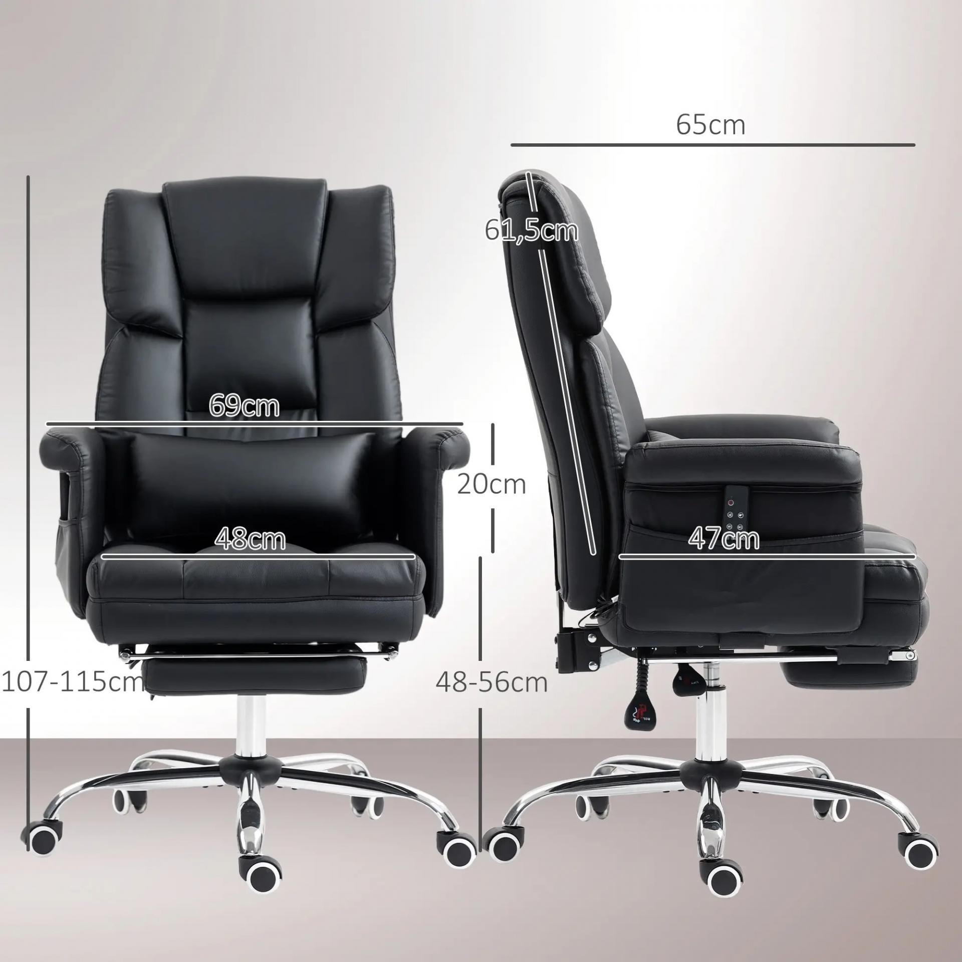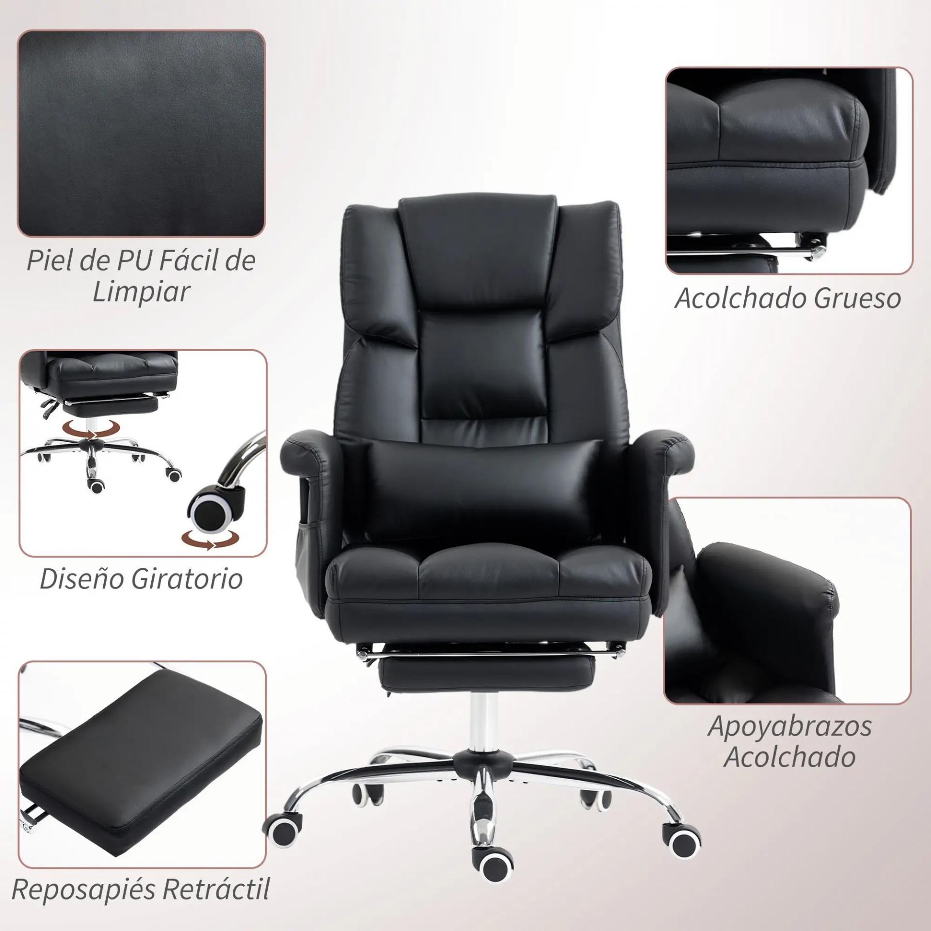 Silla de Oficina con 6 Puntos de Masaje Reposapiés Retráctil Altura Ajustable Control Remoto y Soporte Lumbar Negro