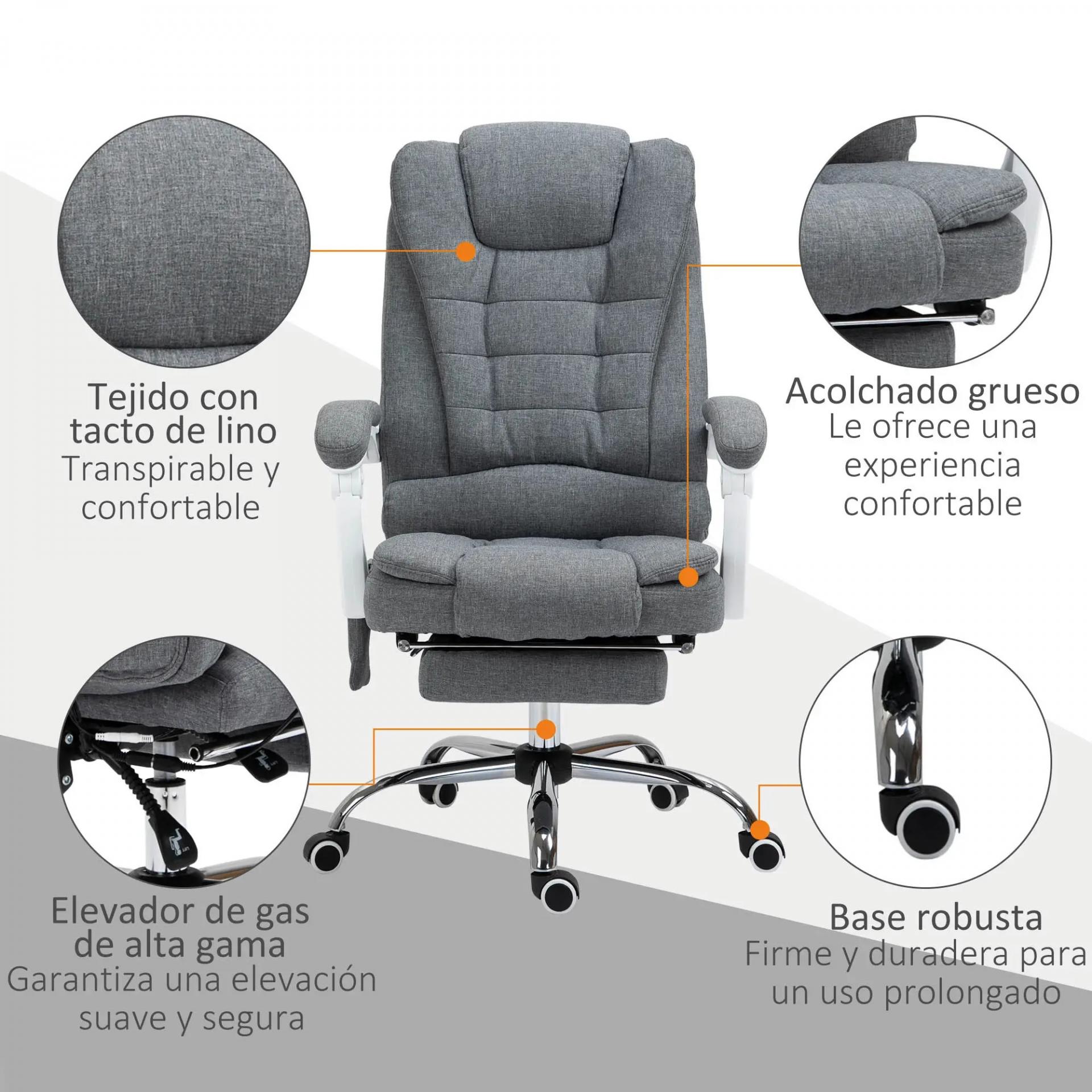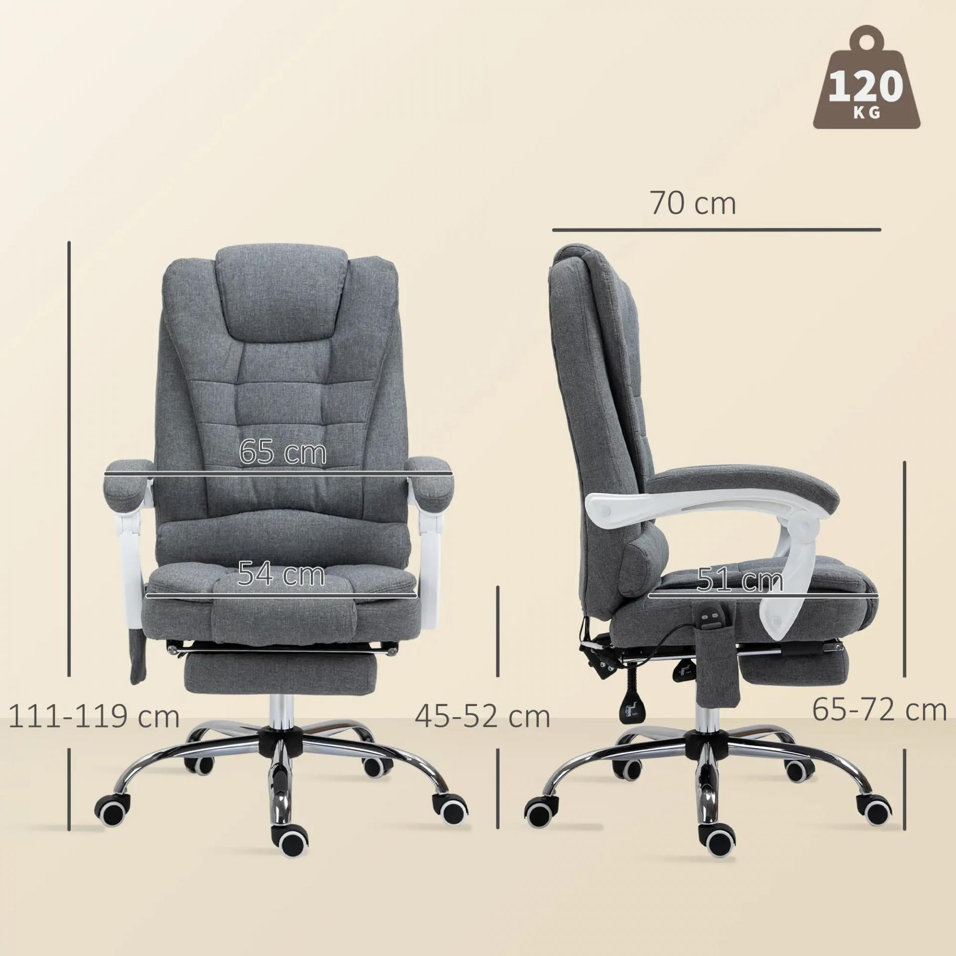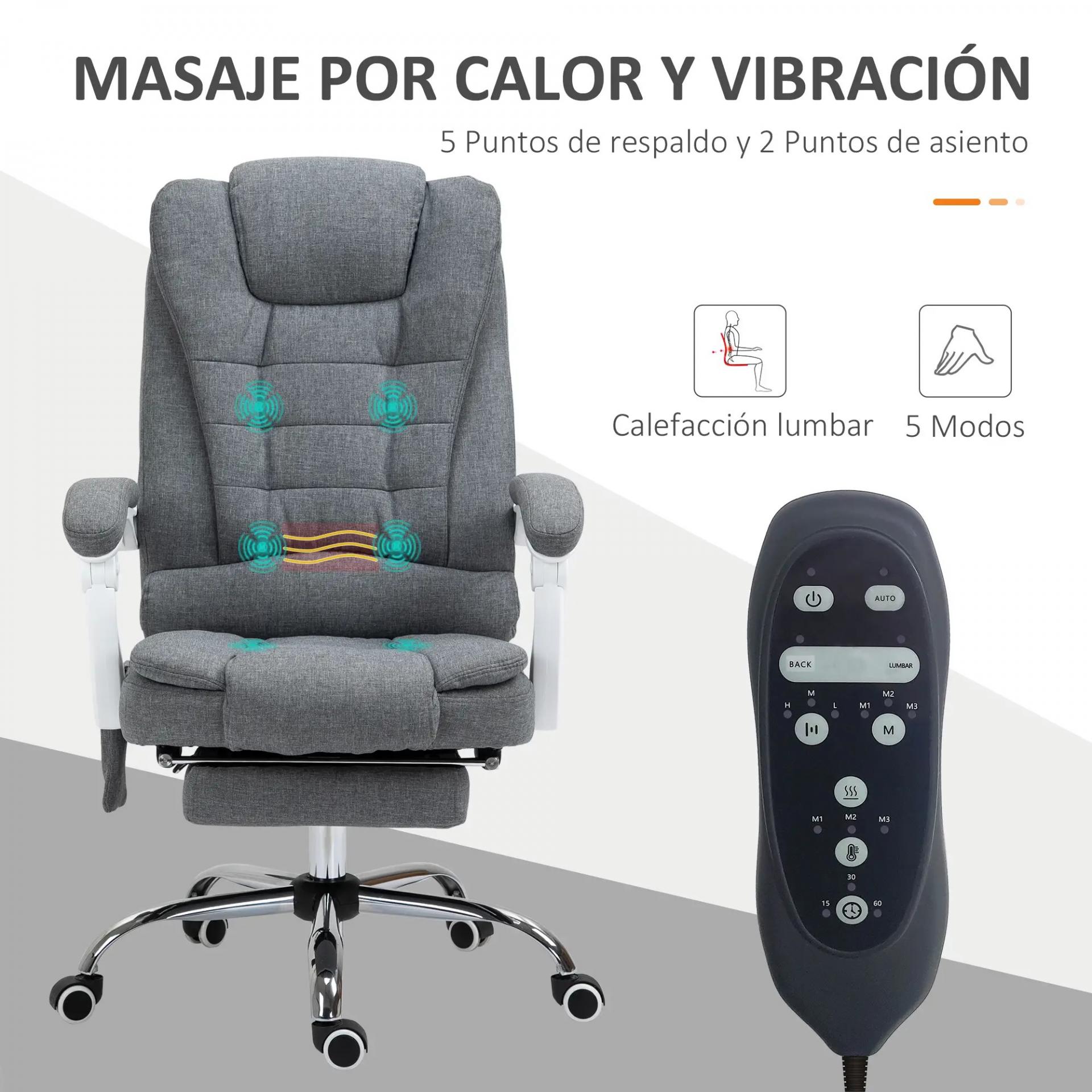Silla de Oficina con 6 Puntos de Masaje Función de Calentamiento Reposapiés y Control Remoto 65x70x111-119 cm Gris