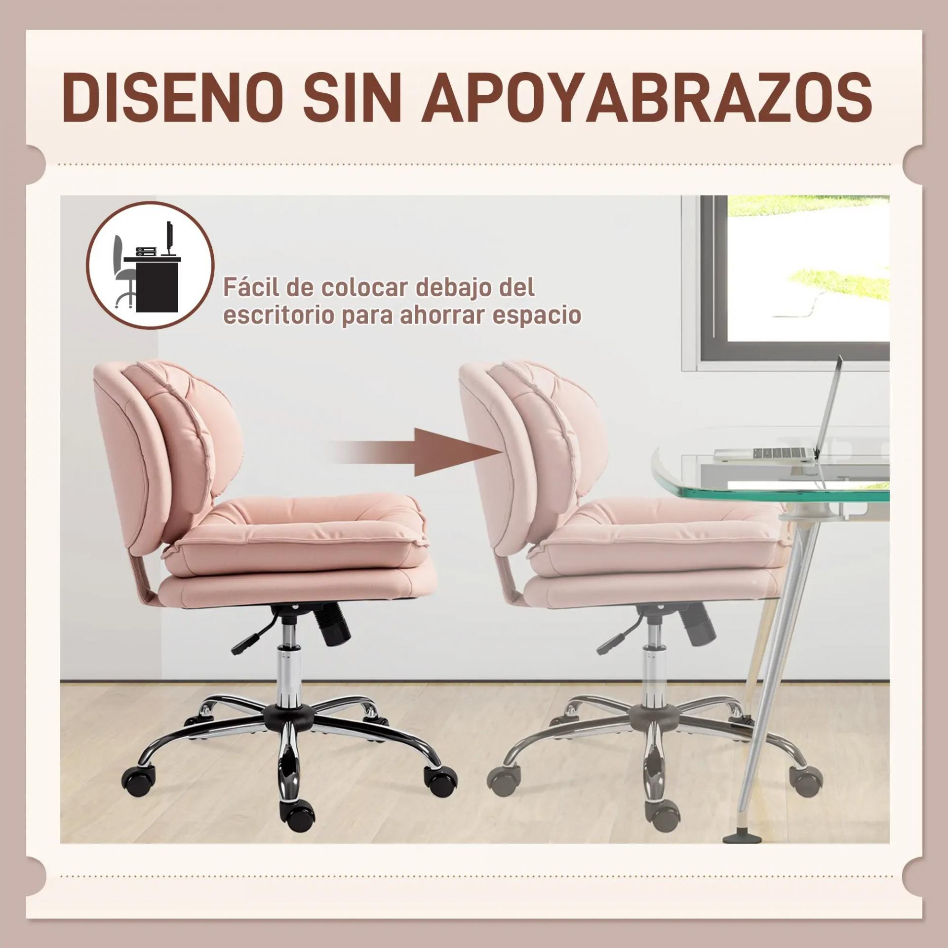 Silla de Oficina Piernas Cruzadas con Asiento Ancho Ruedas Altura Ajustable Doble Acolchado Función Basculante Rosa