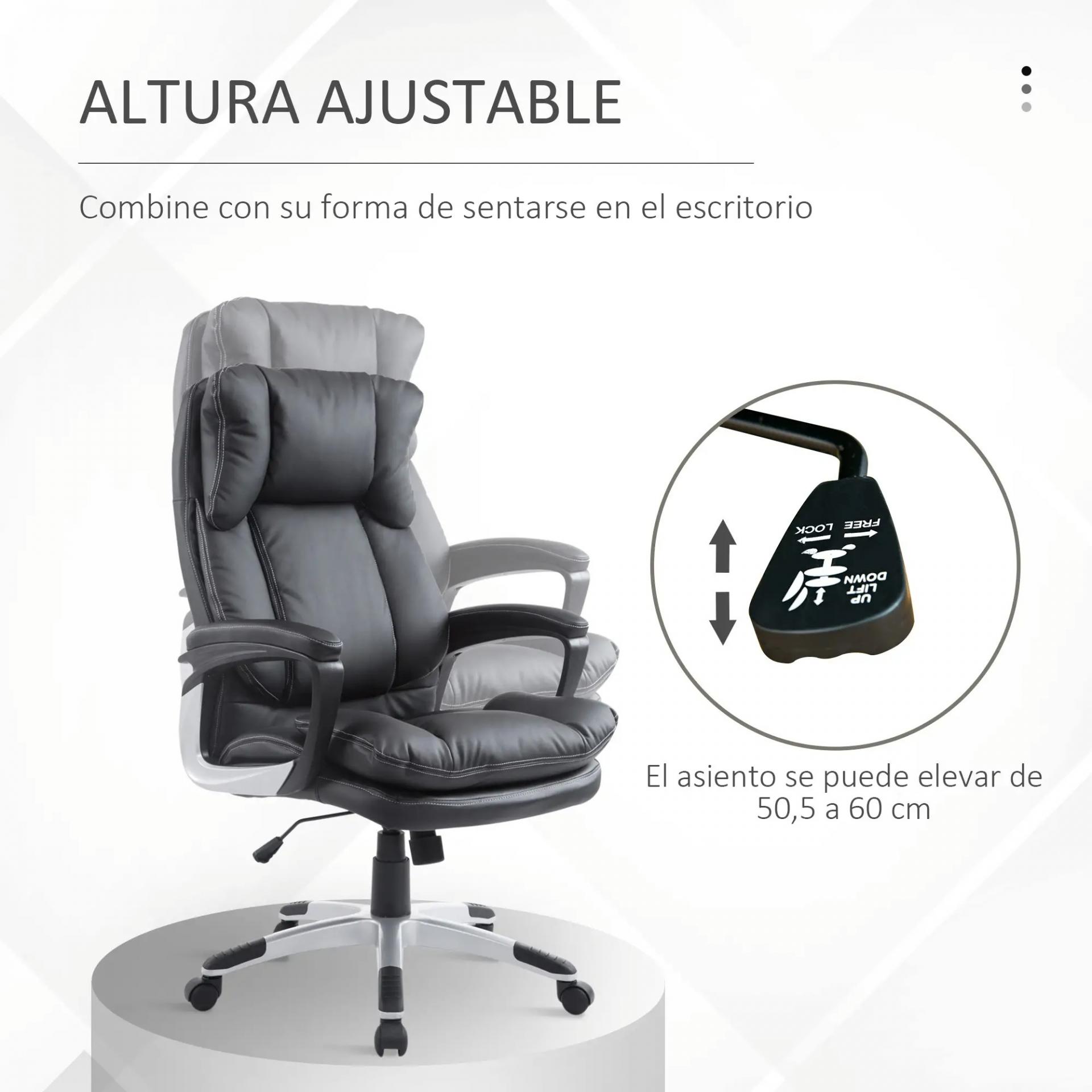 - - MÁXIMA COMODIDAD: Tapizada en cuero sintético y acolchada con una agradable espuma, esta silla de ordenador proporciona un excelente apoyo para todo el cuerpo. Además, el apoyo para la cabeza y el apoyo para el brazo ofrecen un gran confort para soportar las largas jornadas de trabajo