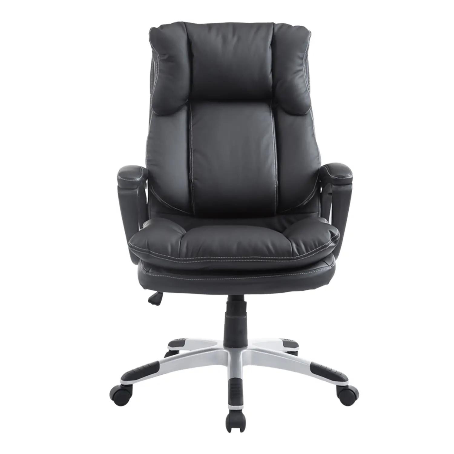 - DISEÑO ELEGANTE: Esta silla de oficina, también conocida como silla ejecutiva, está tapizada con un agradable tejido de cuero sintético en color negro y con un bonito patrón de líneas en el respaldo y asiento. Las líneas añaden mayor elegancia. Es la silla perfecta para estudio, oficina, dormitorio, etc.