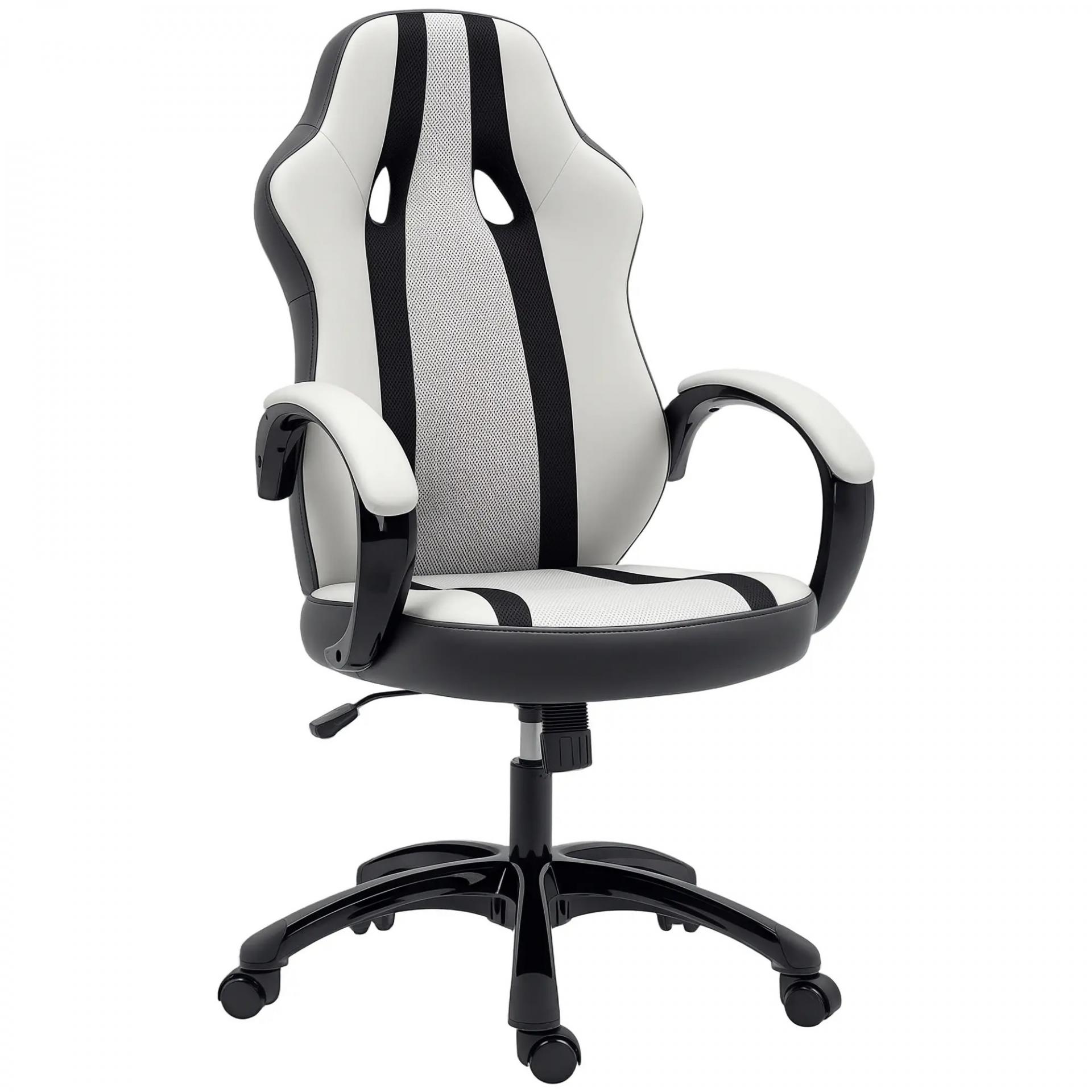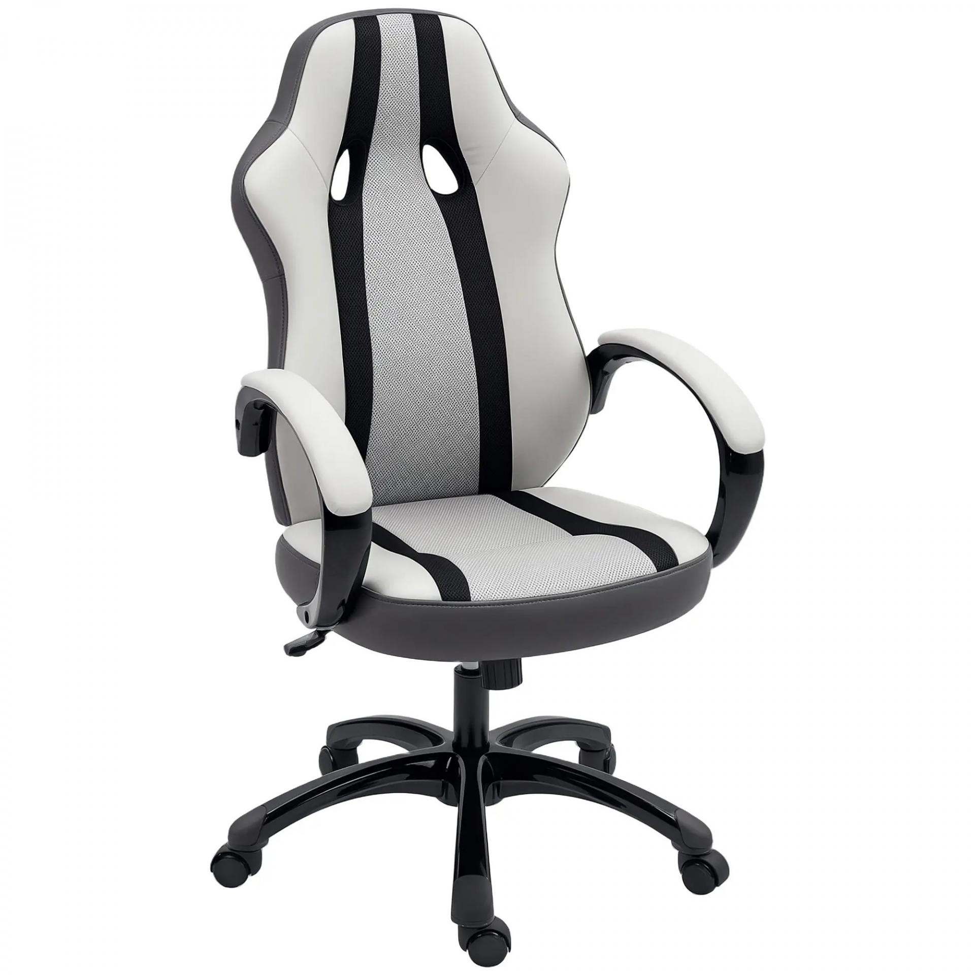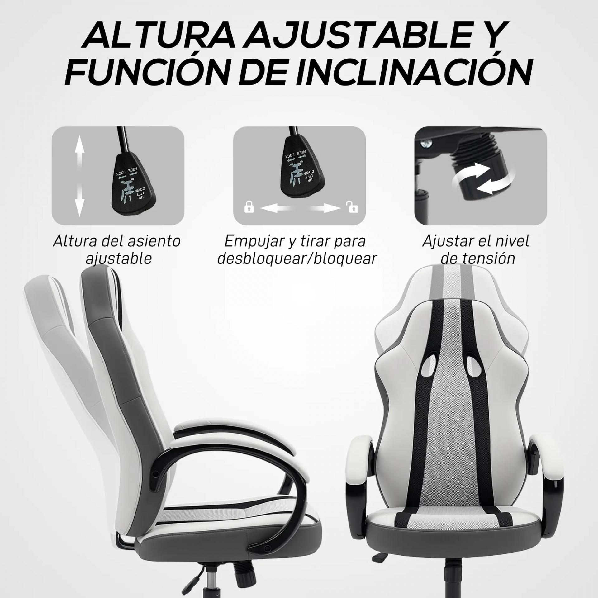 Silla Gaming Tapizada en PU y Malla Silla Gamer Giratoria con Función de Basculante Altura Ajustable Gris