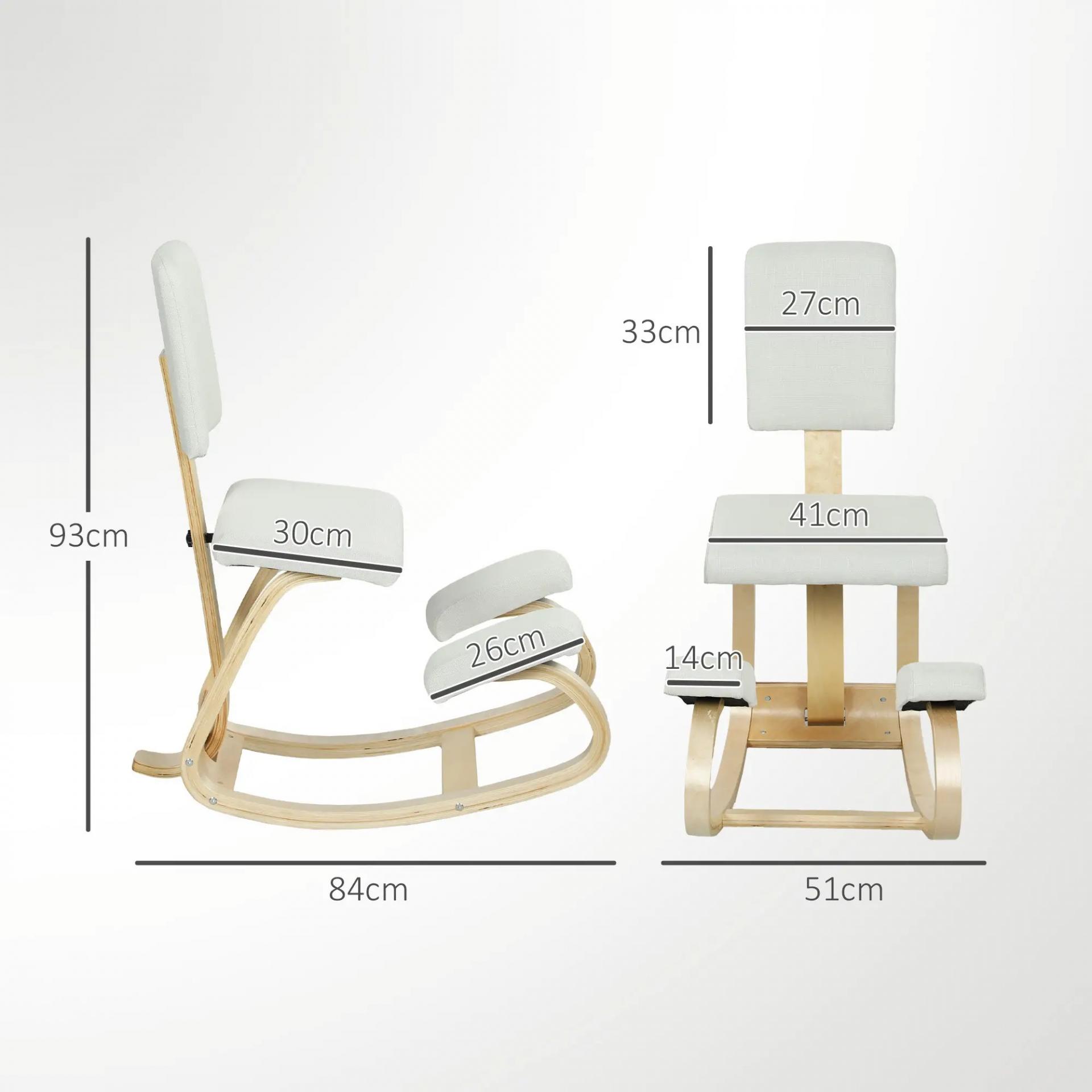 Silla Ergonómica de Rodillas con Respaldo Cojines Acolchados Marco de Madera para una Mejor Postura Oficina Crema