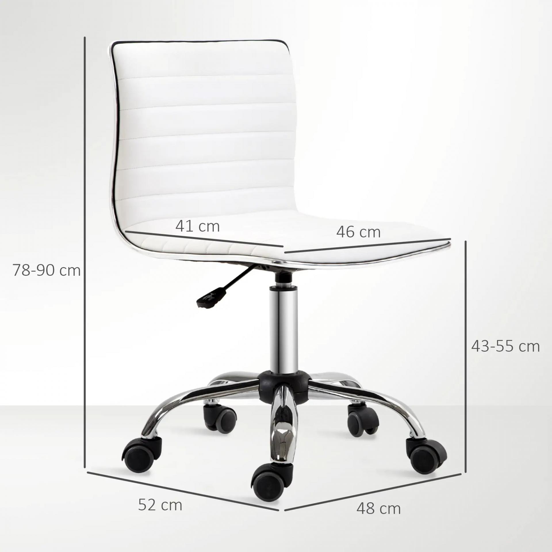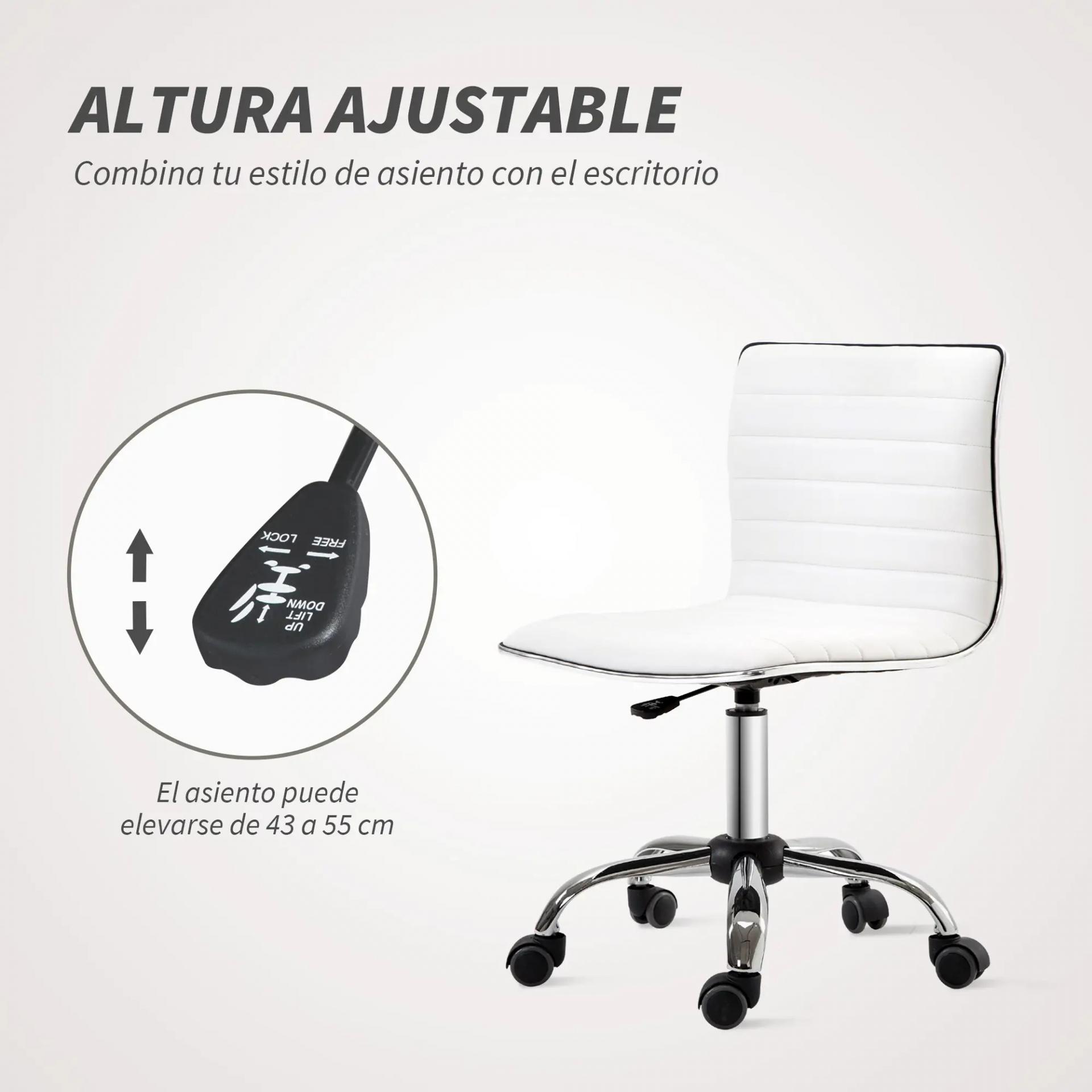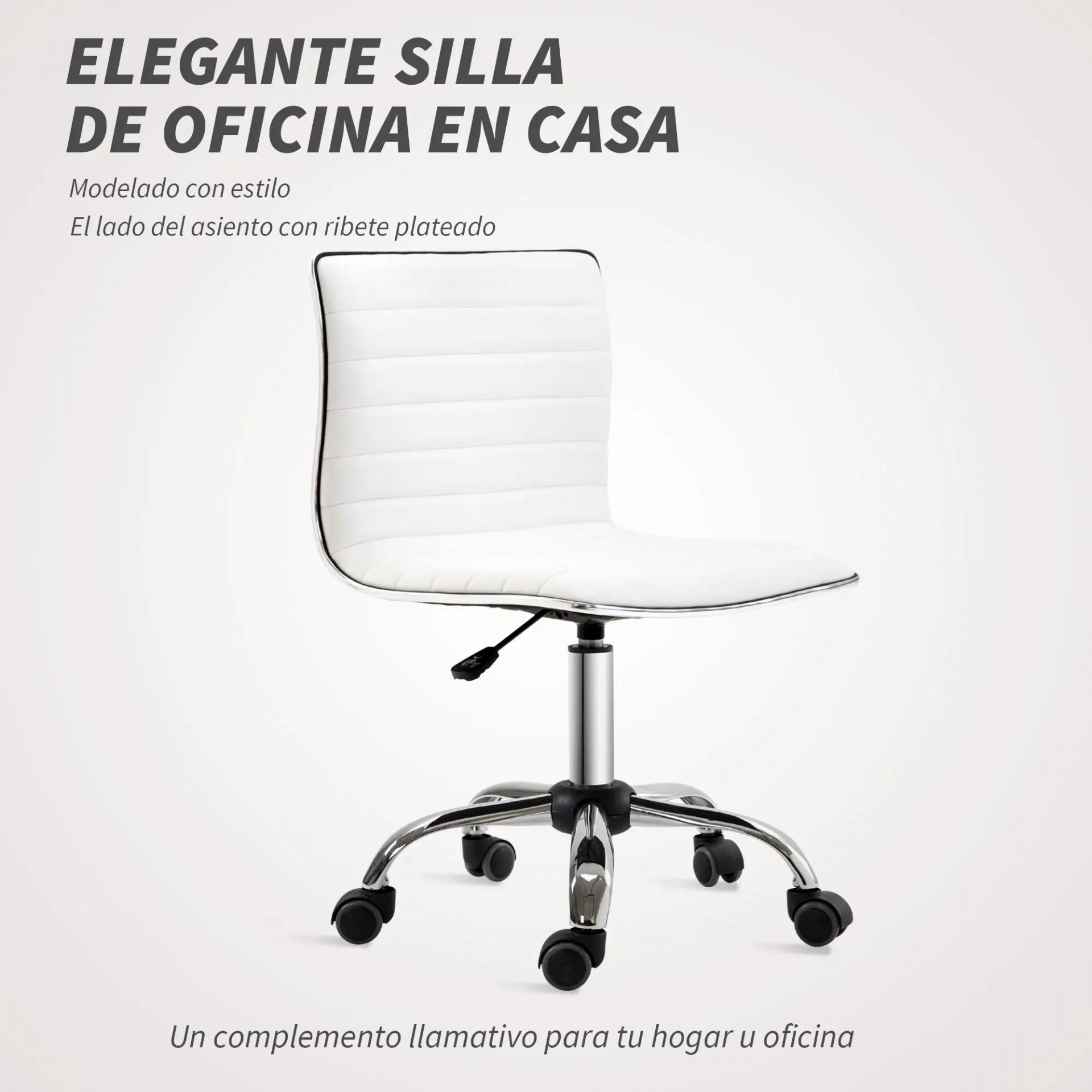 Silla de Escritorio sin Brazos Giratoria con Altura Ajustable Silla para Estudio Tapizada en PU Carga 120 kg Blanco