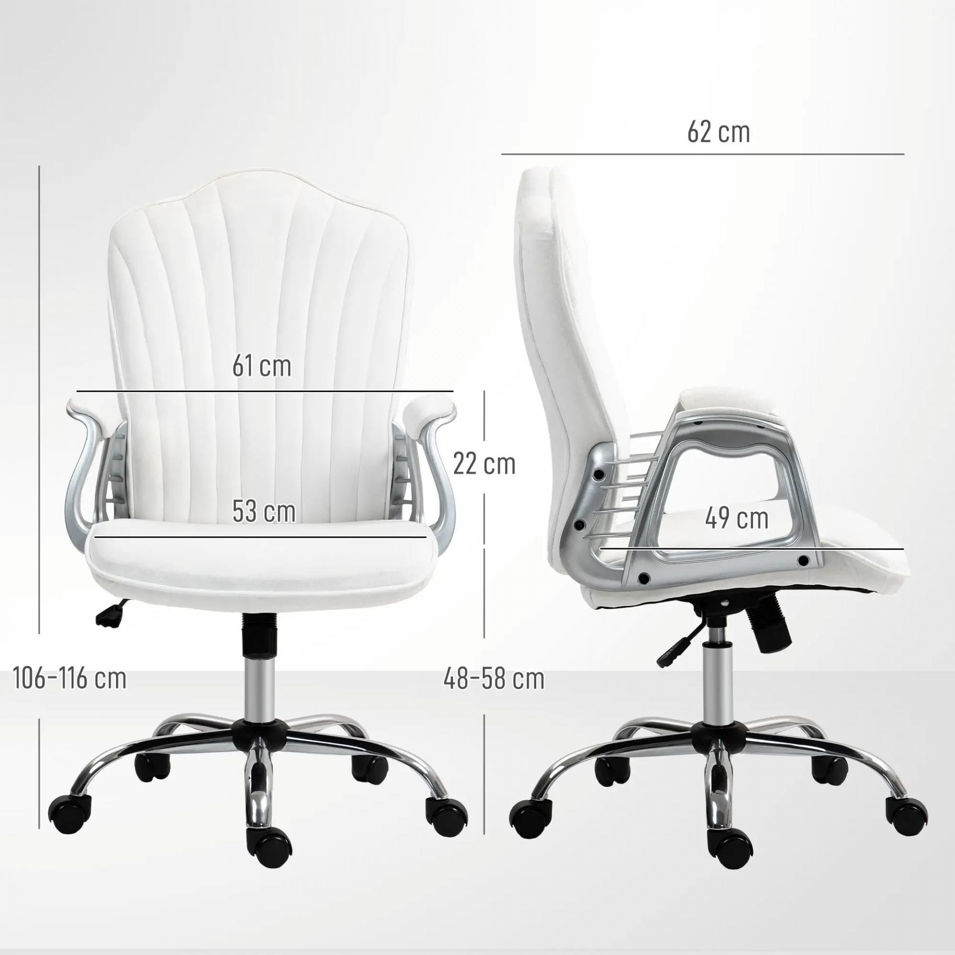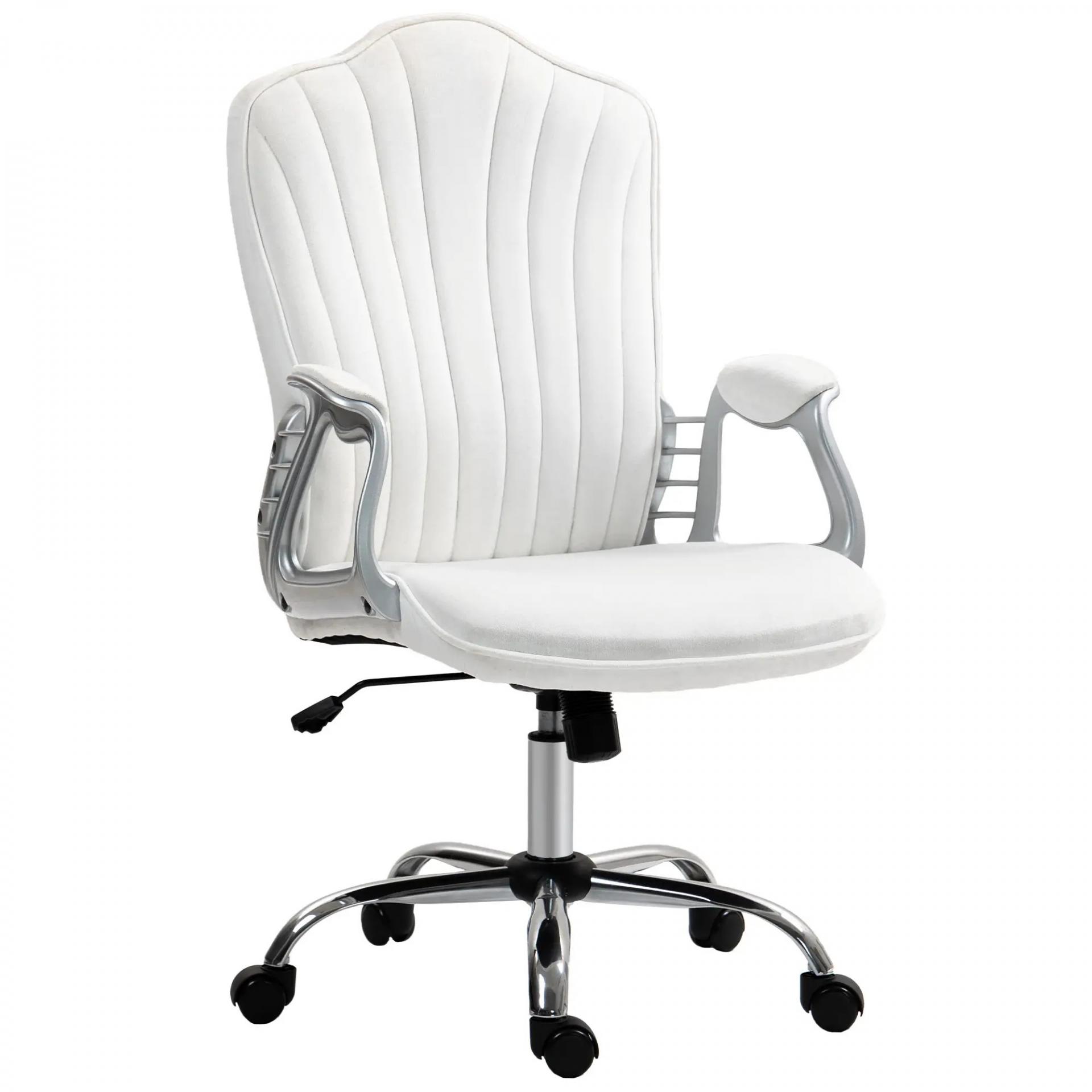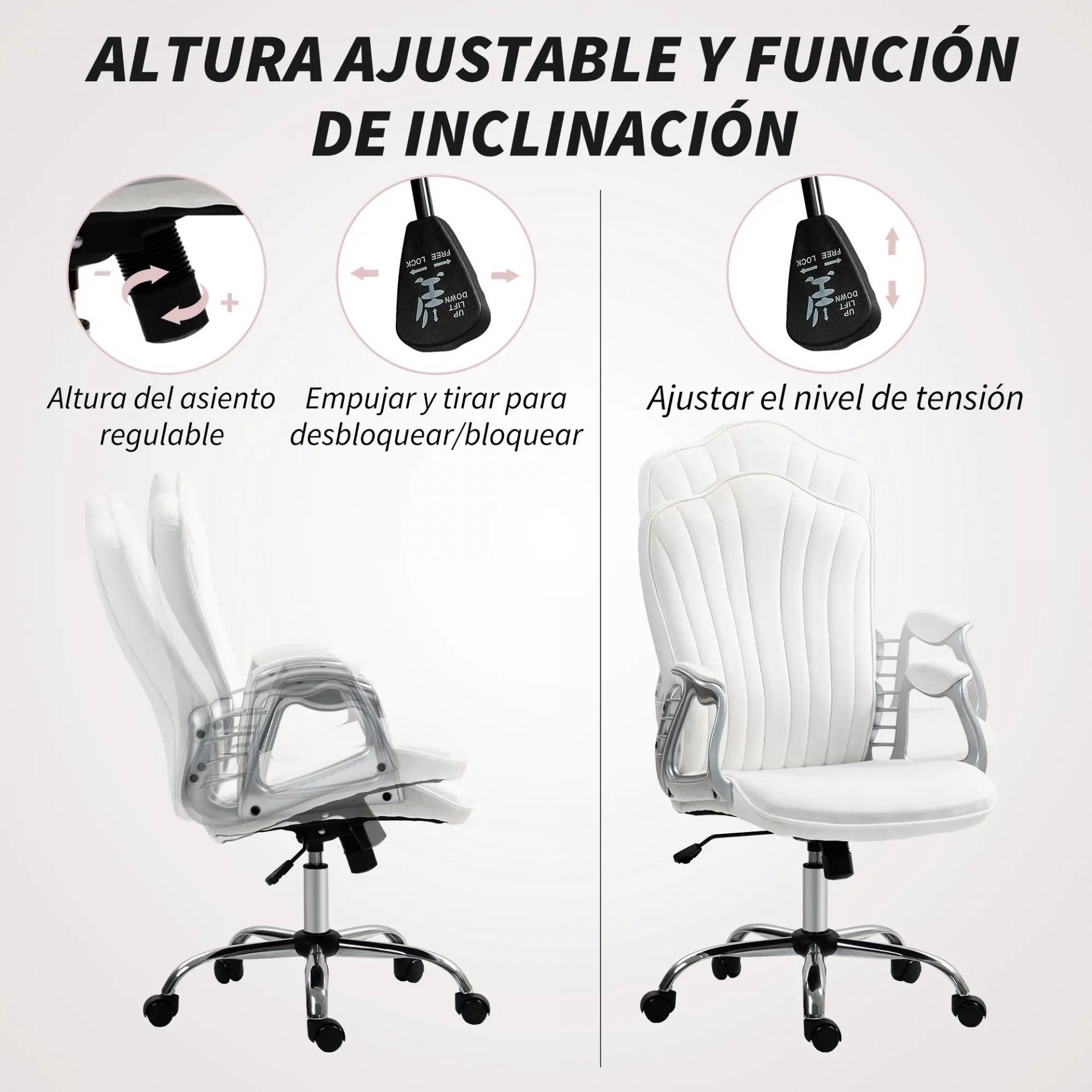 Silla de Escritorio Giratoria con Altura Ajustable Reposabrazos Respaldo Curvado Función de Basculante Blanco