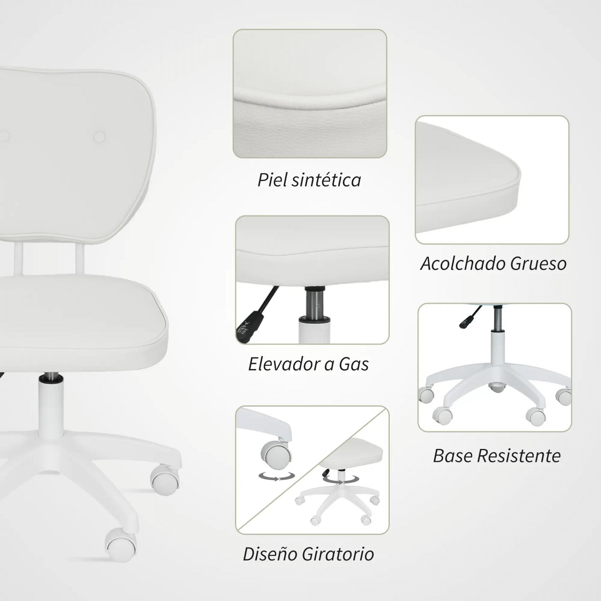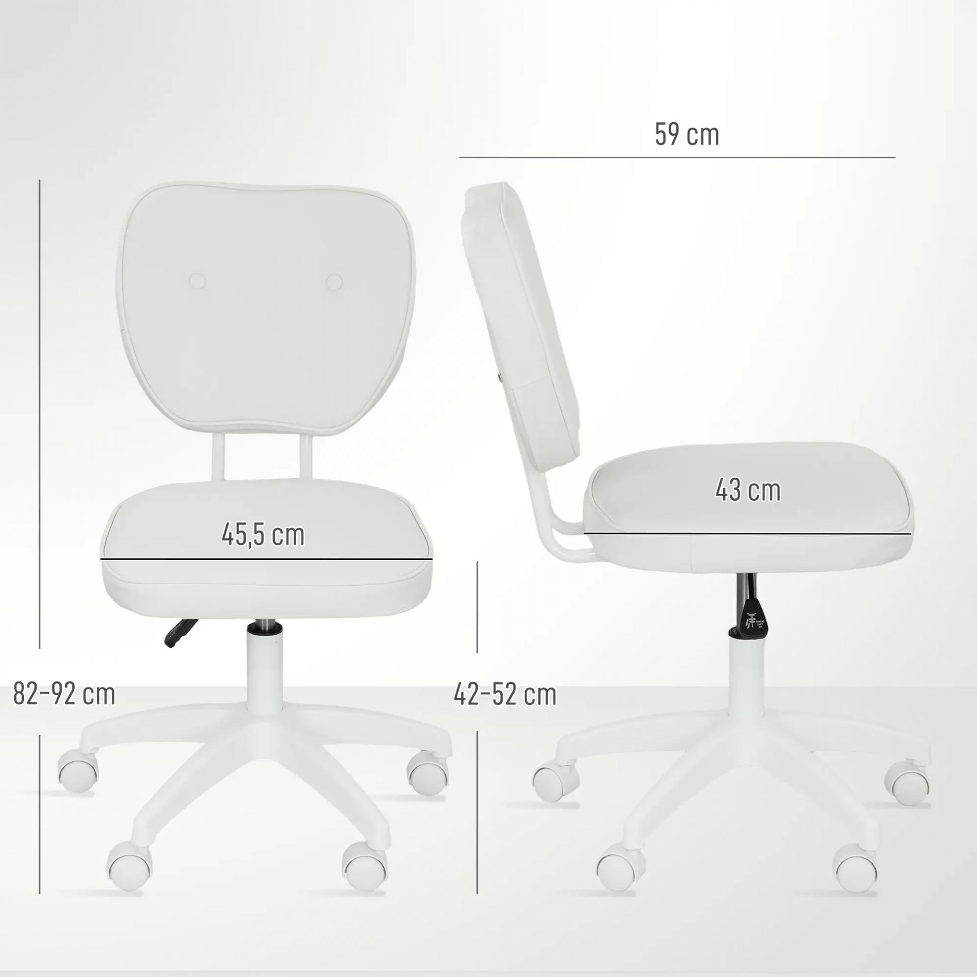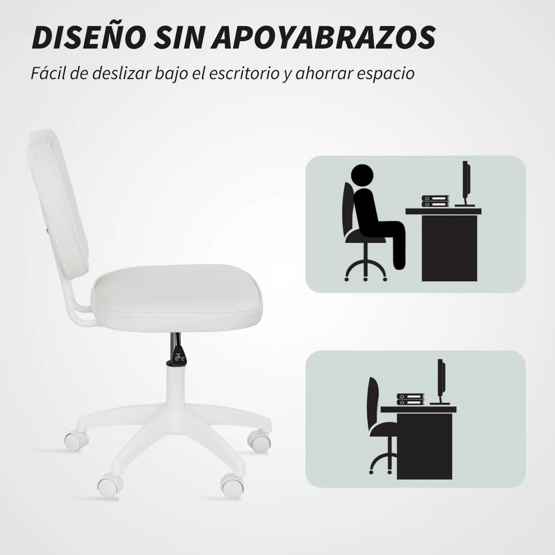 Silla de Oficina Giratoria Tapizada en PU con Altura Ajustable Sin Brazos Carga 120 kg 46x59x82-92 cm Blanco