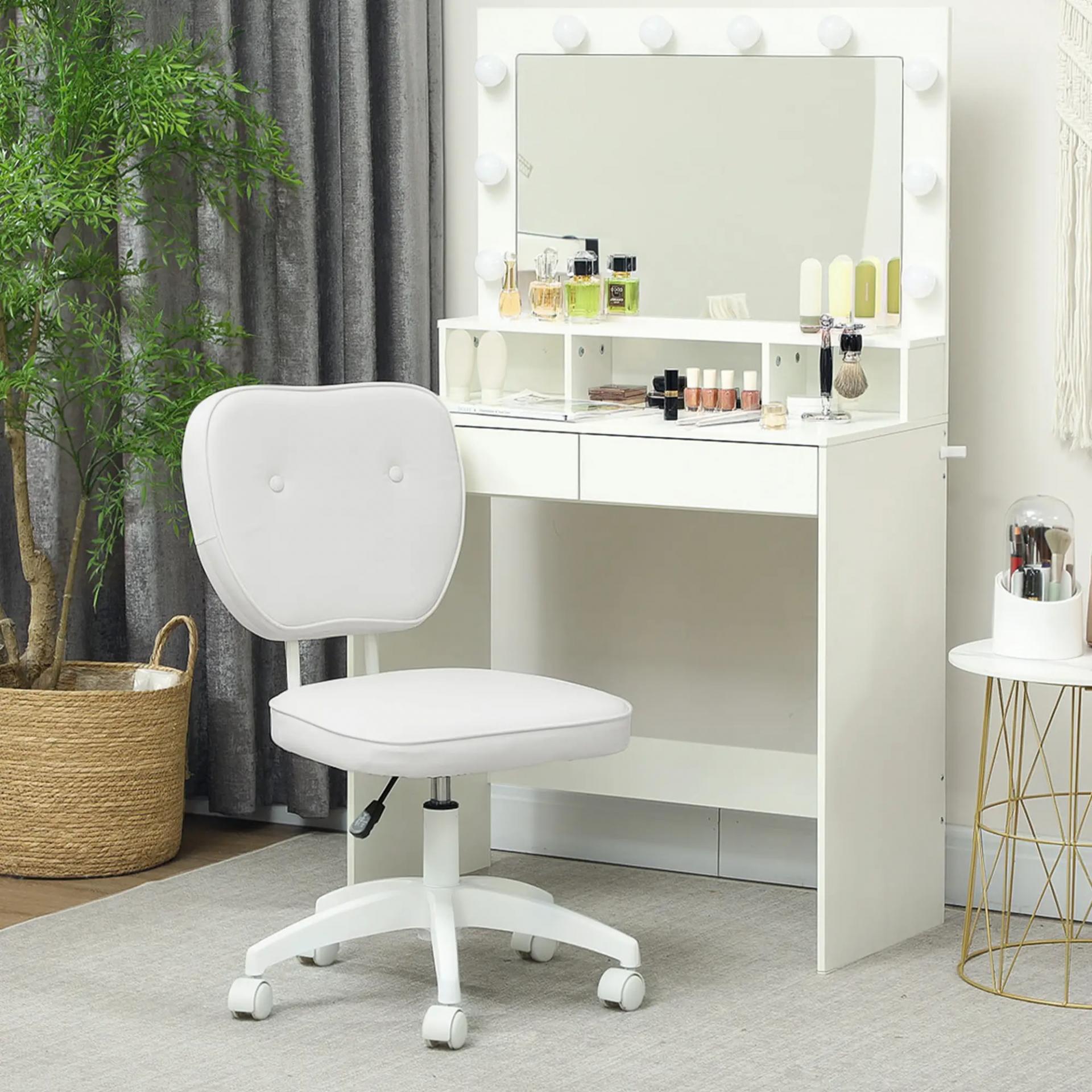 - - PIEL SINTÉTICA ROSA: Tapizada en elegante piel sintética blanca, esta silla de oficina giratoria no solo ofrece comodidad, sino que también añade un toque de estilo y elegancia al entorno. Además, es fácil de limpiar y mantener