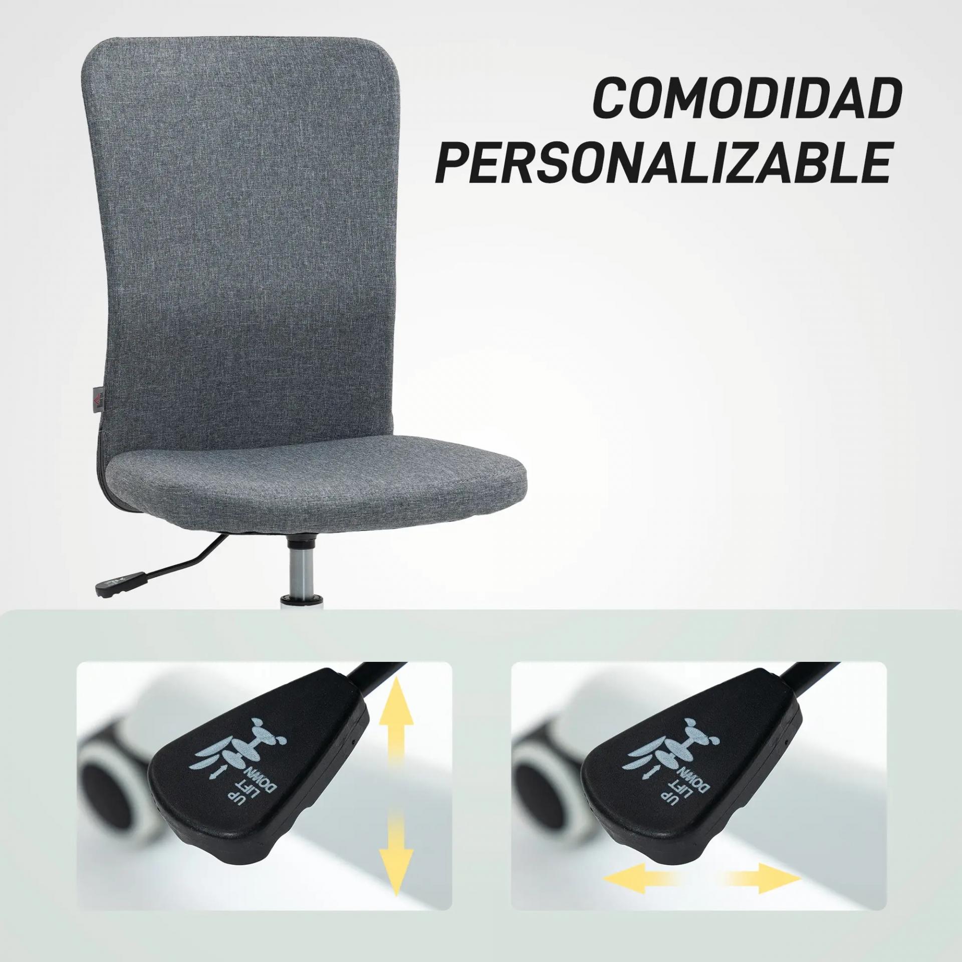 Silla de Oficina con Ruedas Altura Ajustable y Tapizado en Lino Sintético para Oficina o Estudio 53x43x85-93 cm Gris
