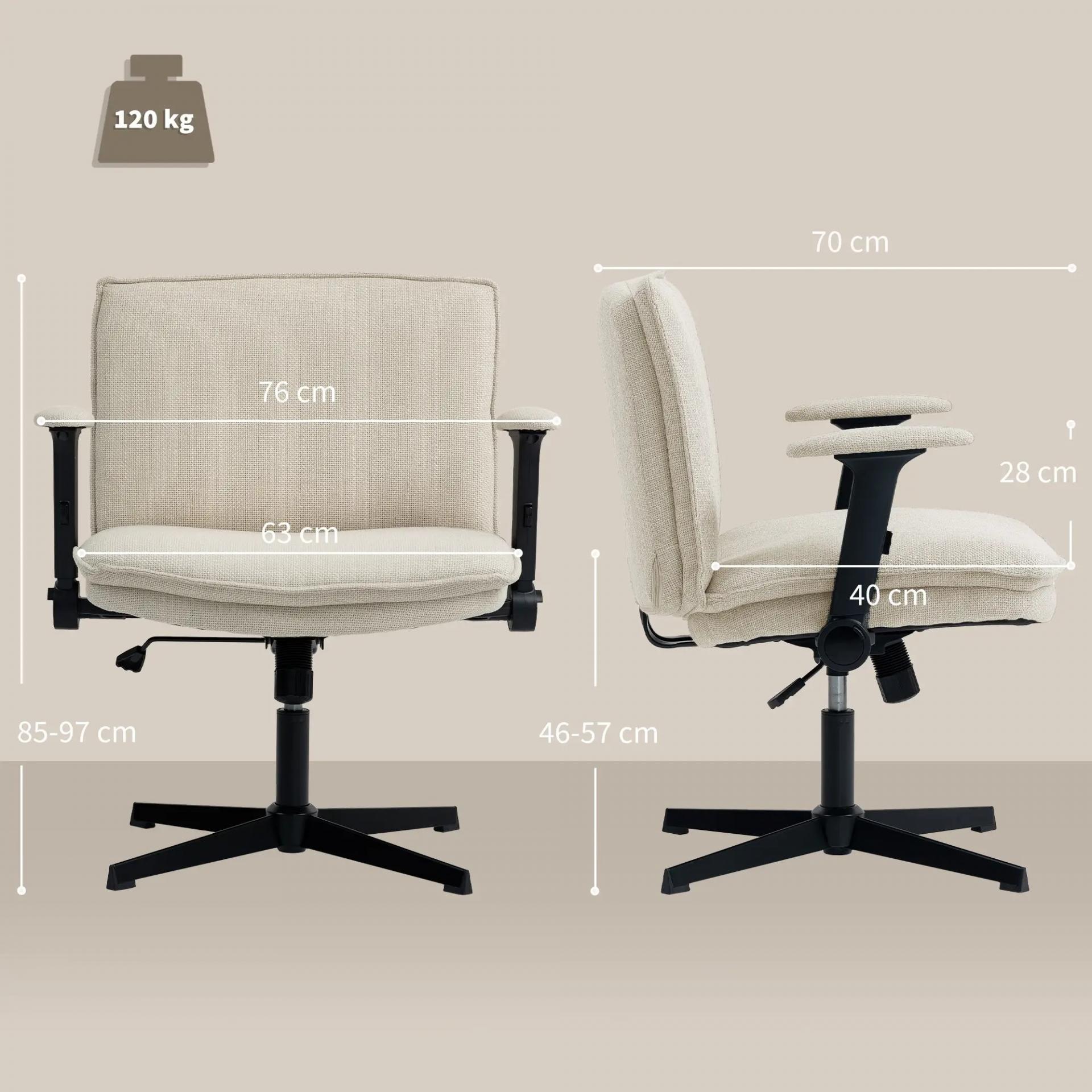 Silla de Oficina Piernas Cruzadas con Reposabrazos Abatible Asiento Ancho sin Ruedas Altura Ajustable Giratoria Crema