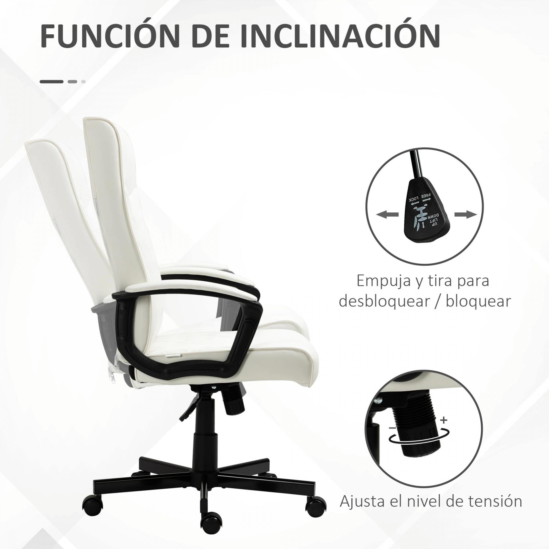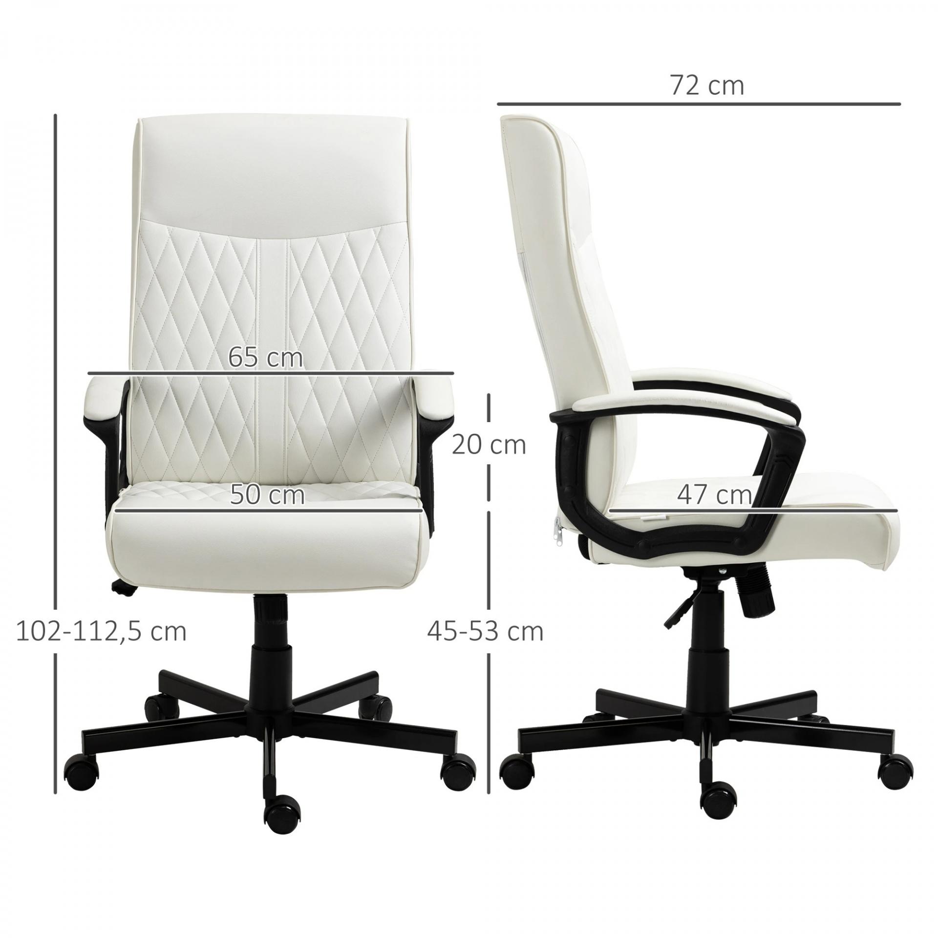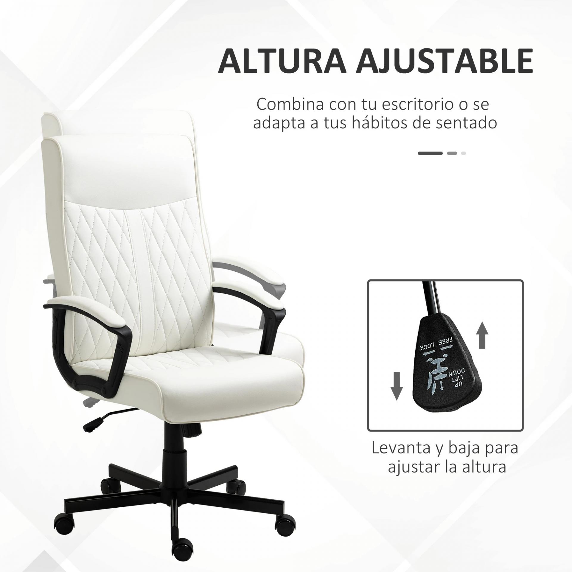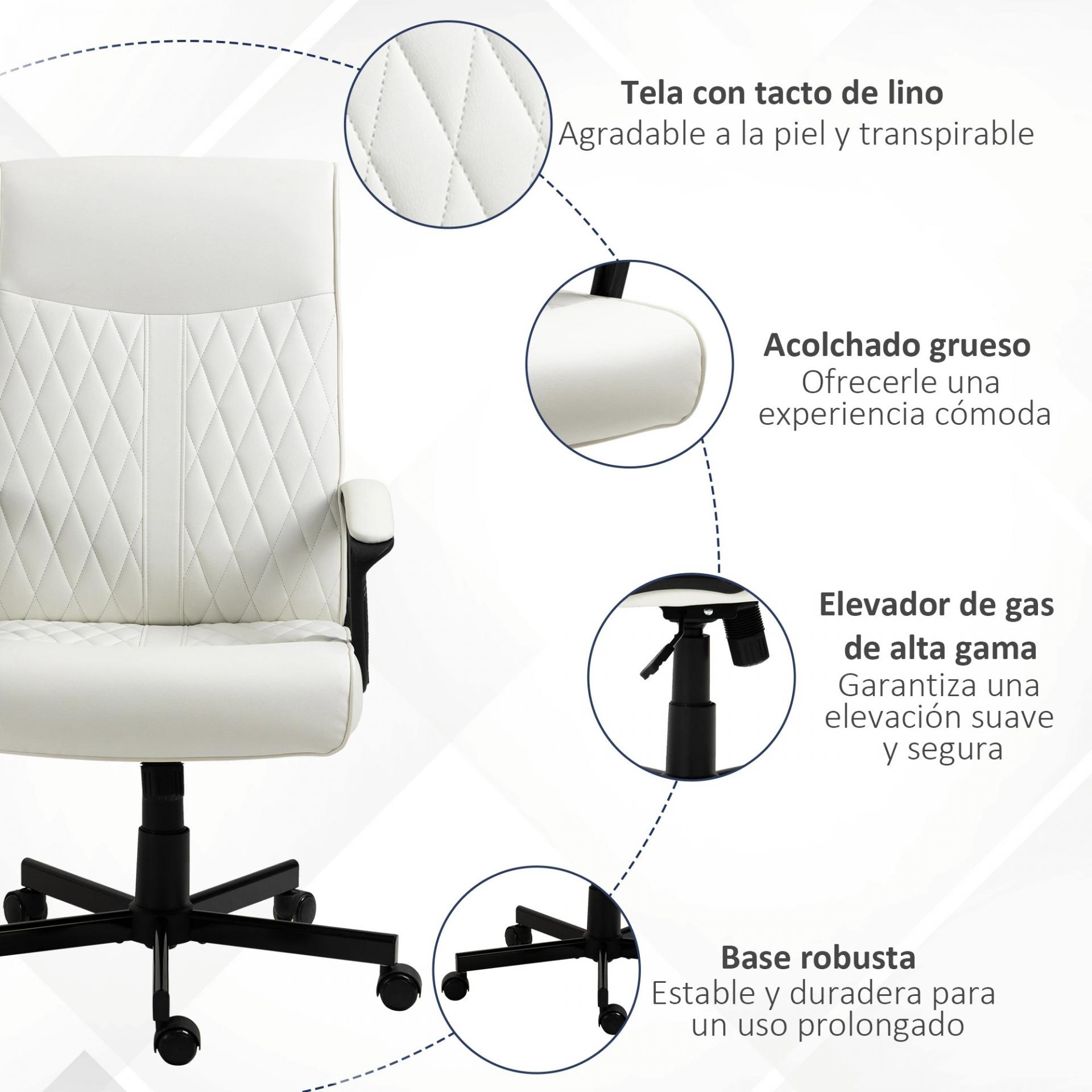 Silla de Oficina con Respaldo Alto Altura Ajustable y Función de Inclinación 65x65x102-112,5 cm Blanco Roto