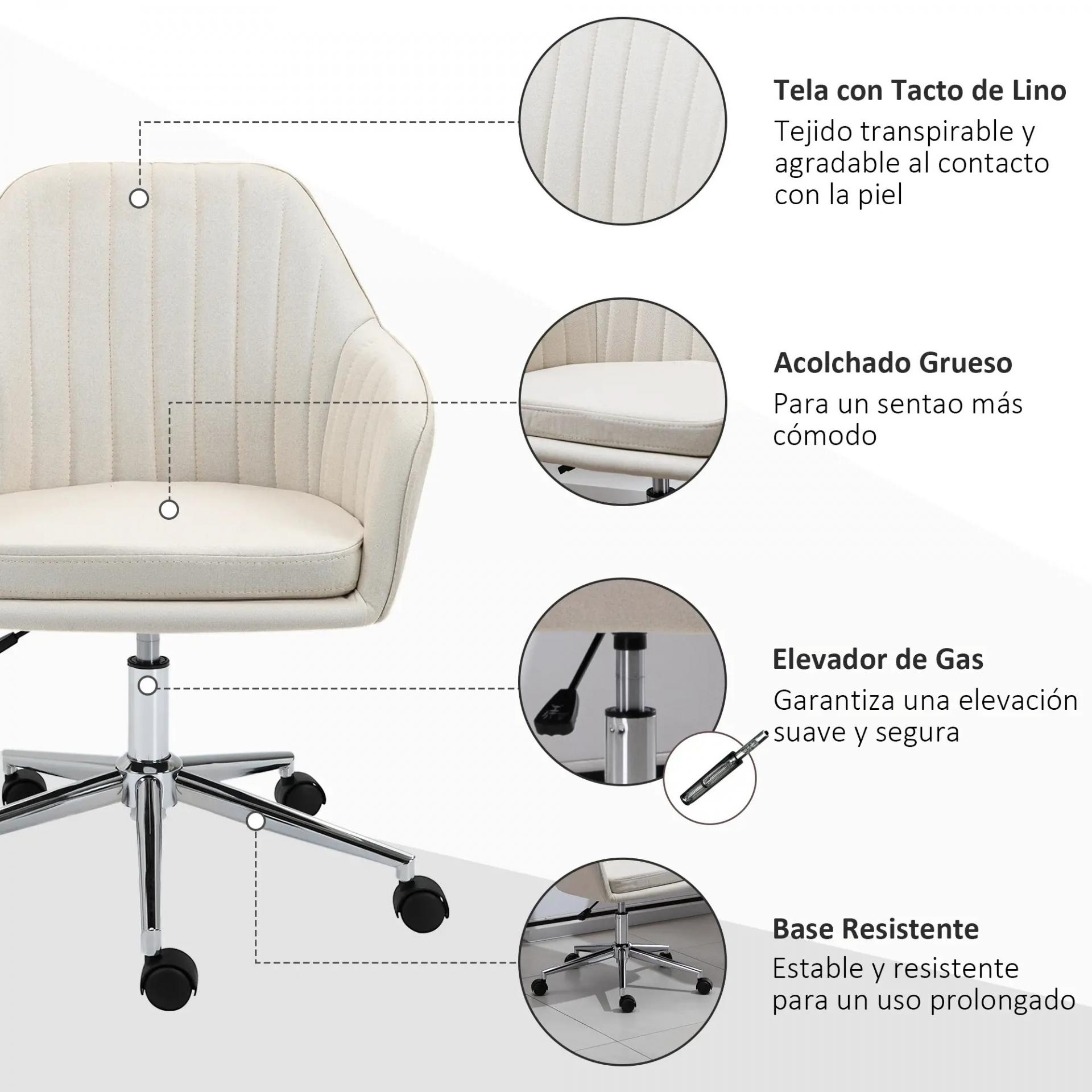 Silla de Oficina Silla de Escritorio Giratoria con Altura Ajustable y Reposabrazos para Estudio Tocador 61x59x96cm Beige