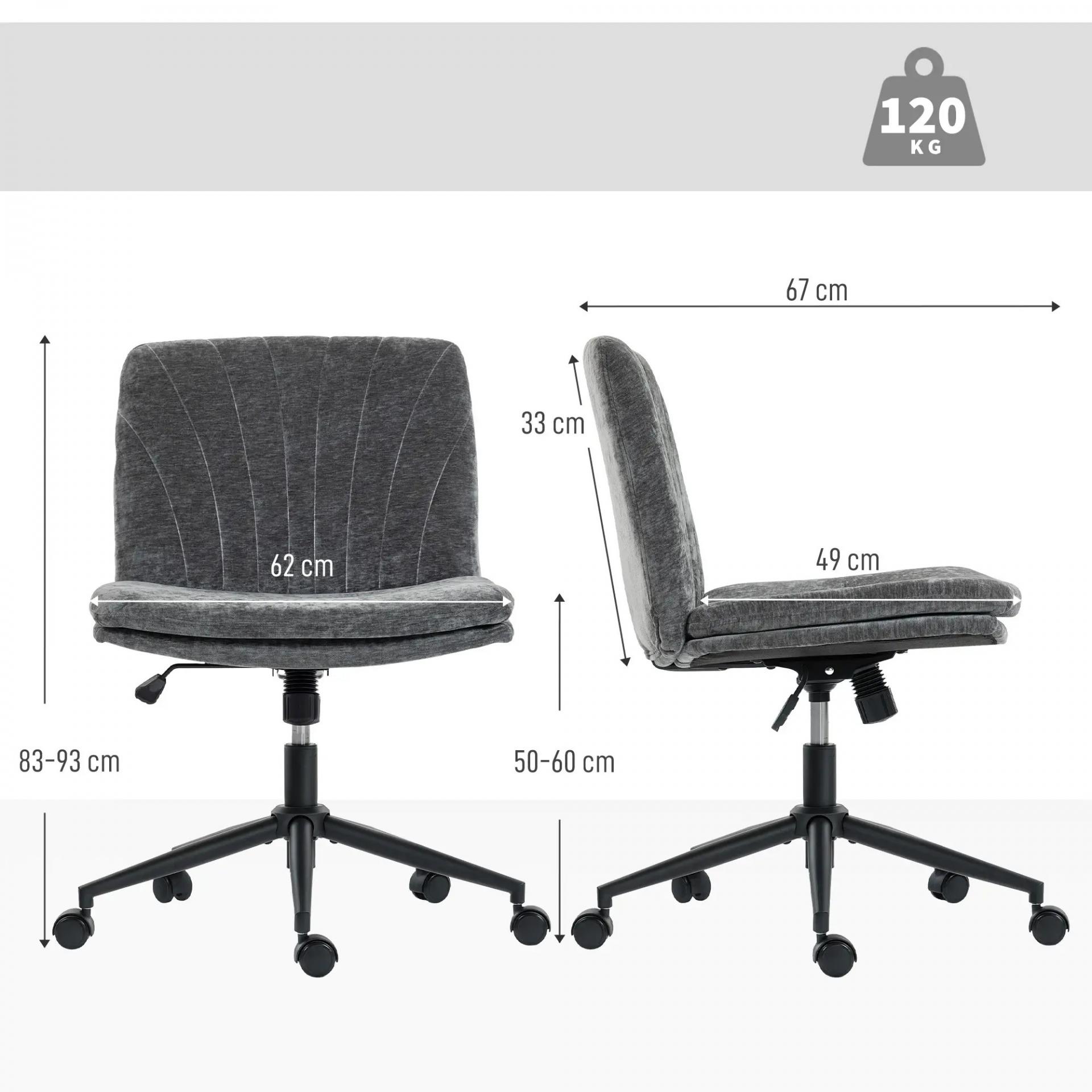 Silla de Oficina con Asiento Ancho sin Reposabrazos Ruedas Altura Ajustable Giratoria Función Basculante Gris