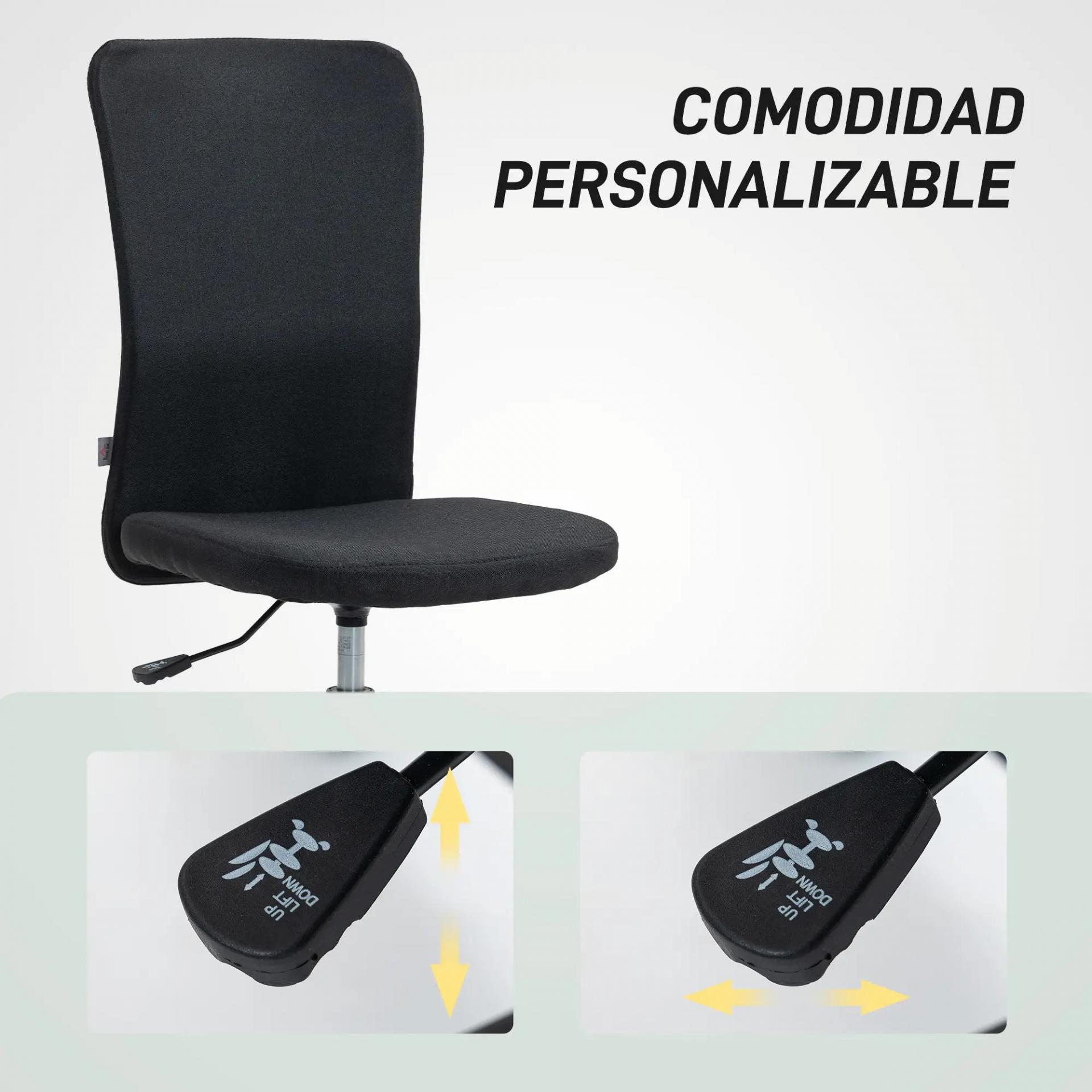 Silla de Oficina con Ruedas Altura Ajustable y Tapizado en Lino Sintético para Oficina o Estudio 53x43x85-93 cm Negro
