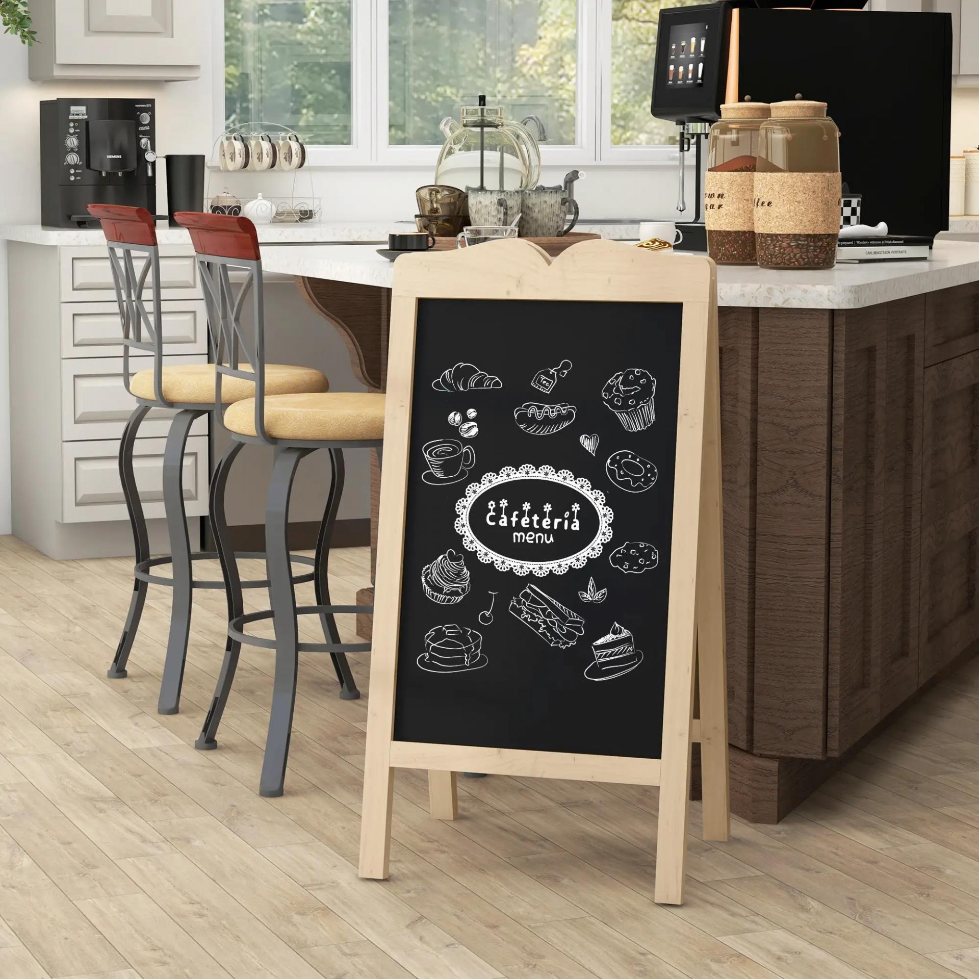 - - ESTRUCTURA DE MADERA: Este caballete de pizarra cuenta con un marco de madera de abeto resistente, ideal para un uso prolongado. Además, su diseño en forma de A garantiza una mayor estabilidad y seguridad
