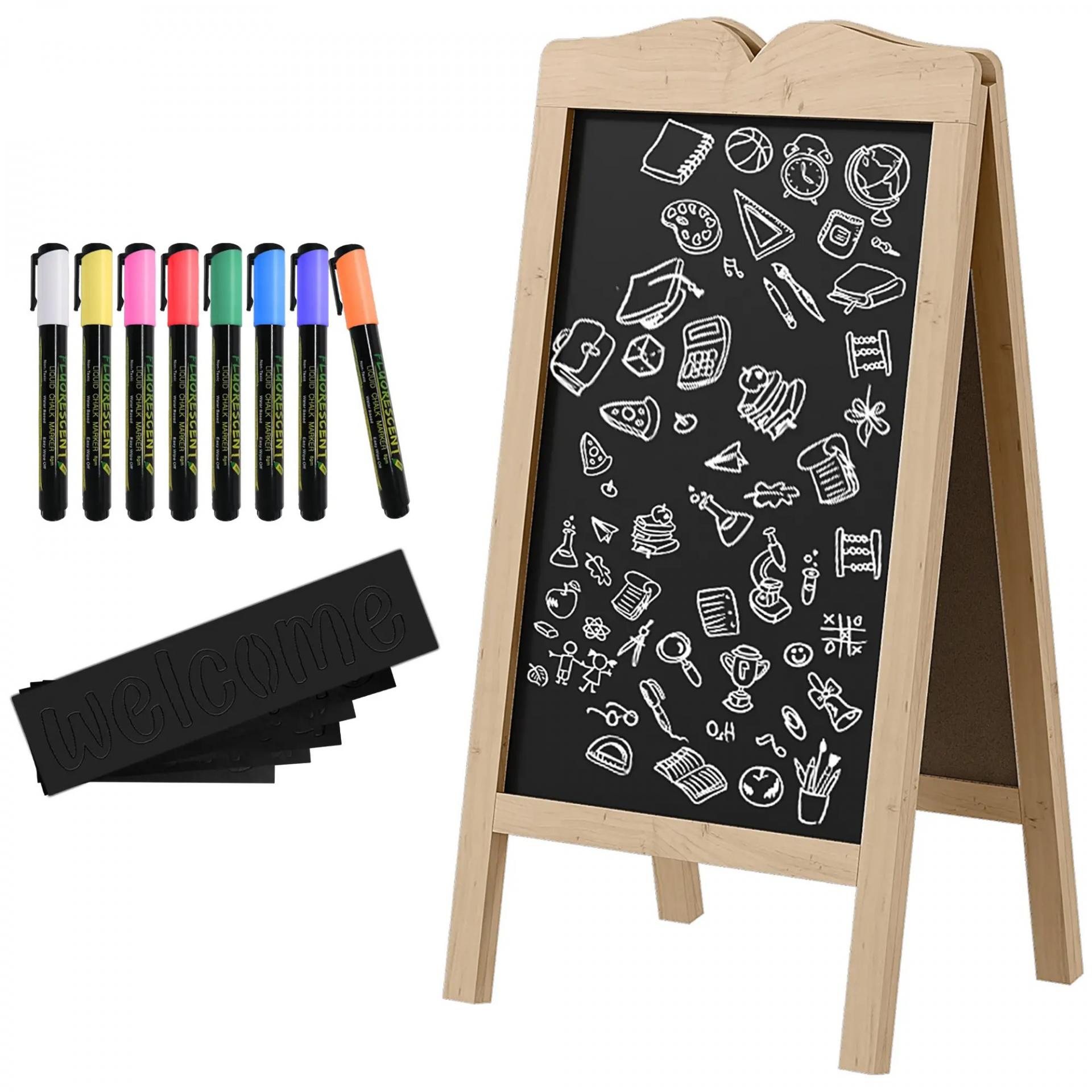 Pizarra Caballete Doble con Marco de Madera Plegable con 8 Tizas Líquidas y 6 Plantillas 51x42x101 cm Natural