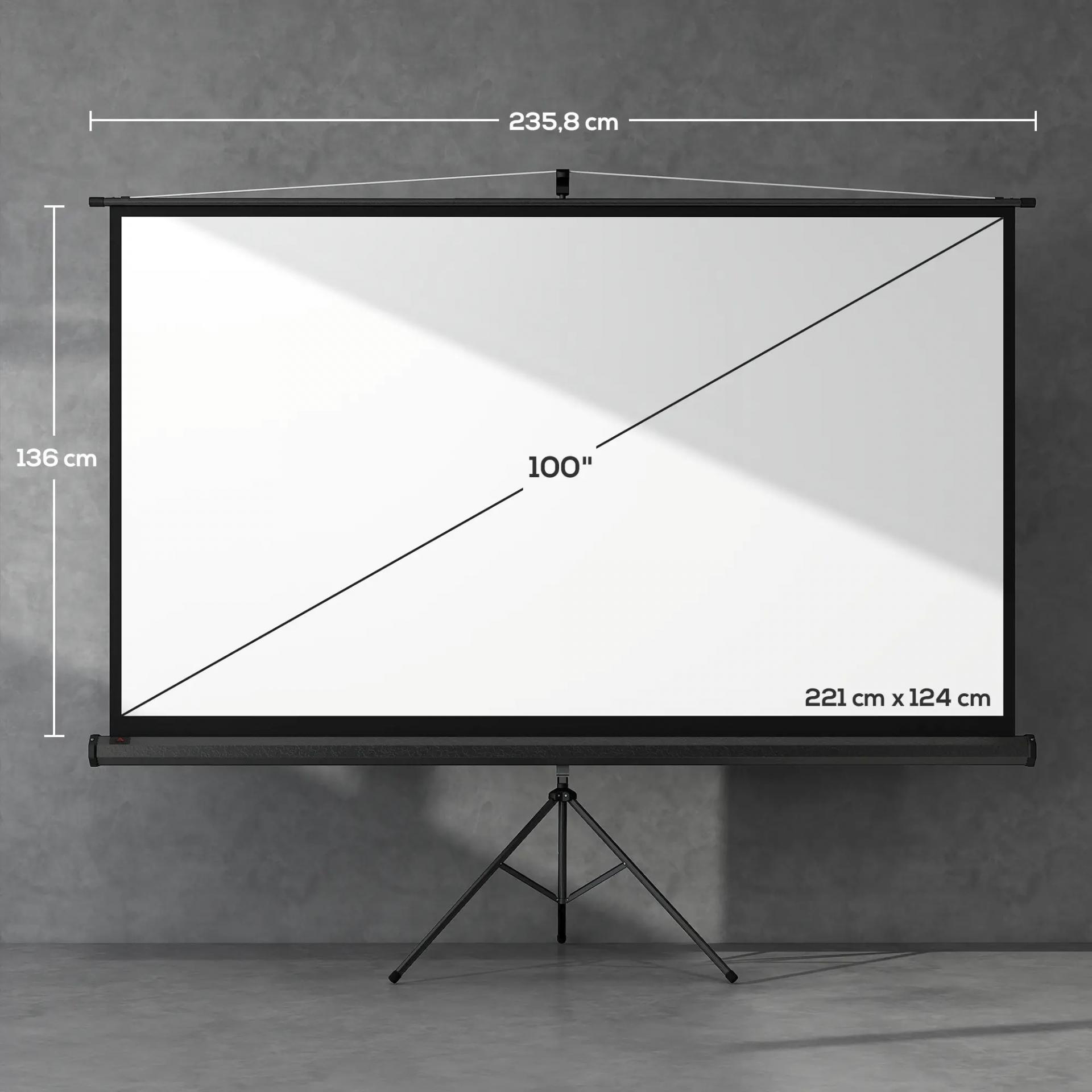 Pantalla de Proyección con Soporte Portátil 100 Pulgadas Formato 16:9 con Altura Ajustable 221x124 cm Negro