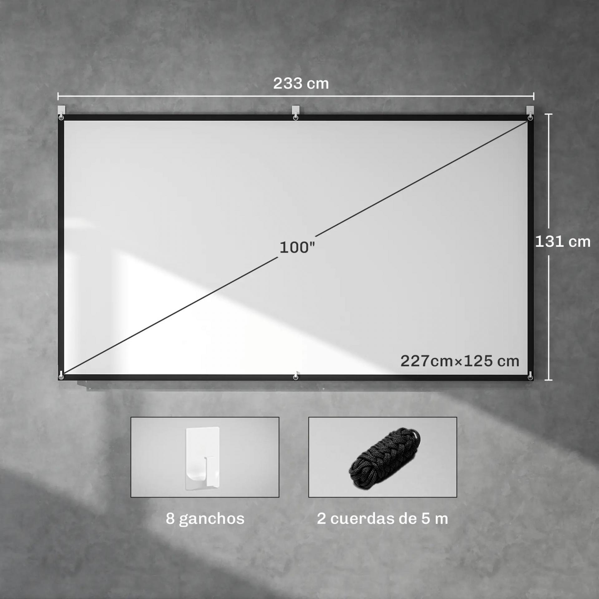 Pantalla de Proyección Manual 100 Pulgadas Formato 16:9 HD 4K/8K para Interior y Exterior Blanco