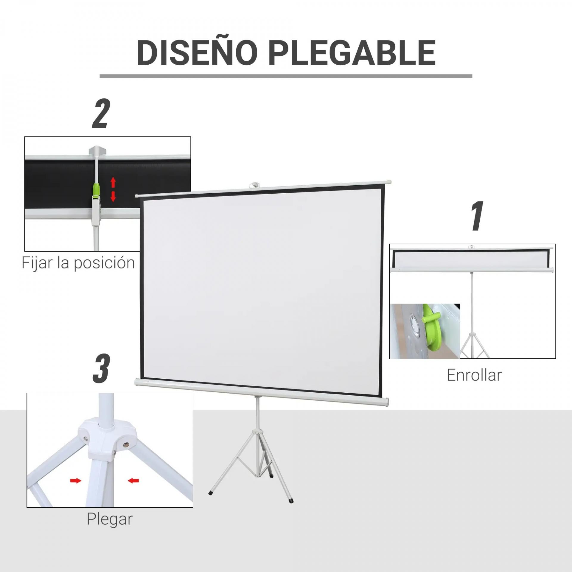 - - ESTRUCTURA ESTABLE: Cuenta un soporte en forma de trípode de metal resistente, robusto y estable. Ideal para usar tu pantalla para proyector de forma más segura