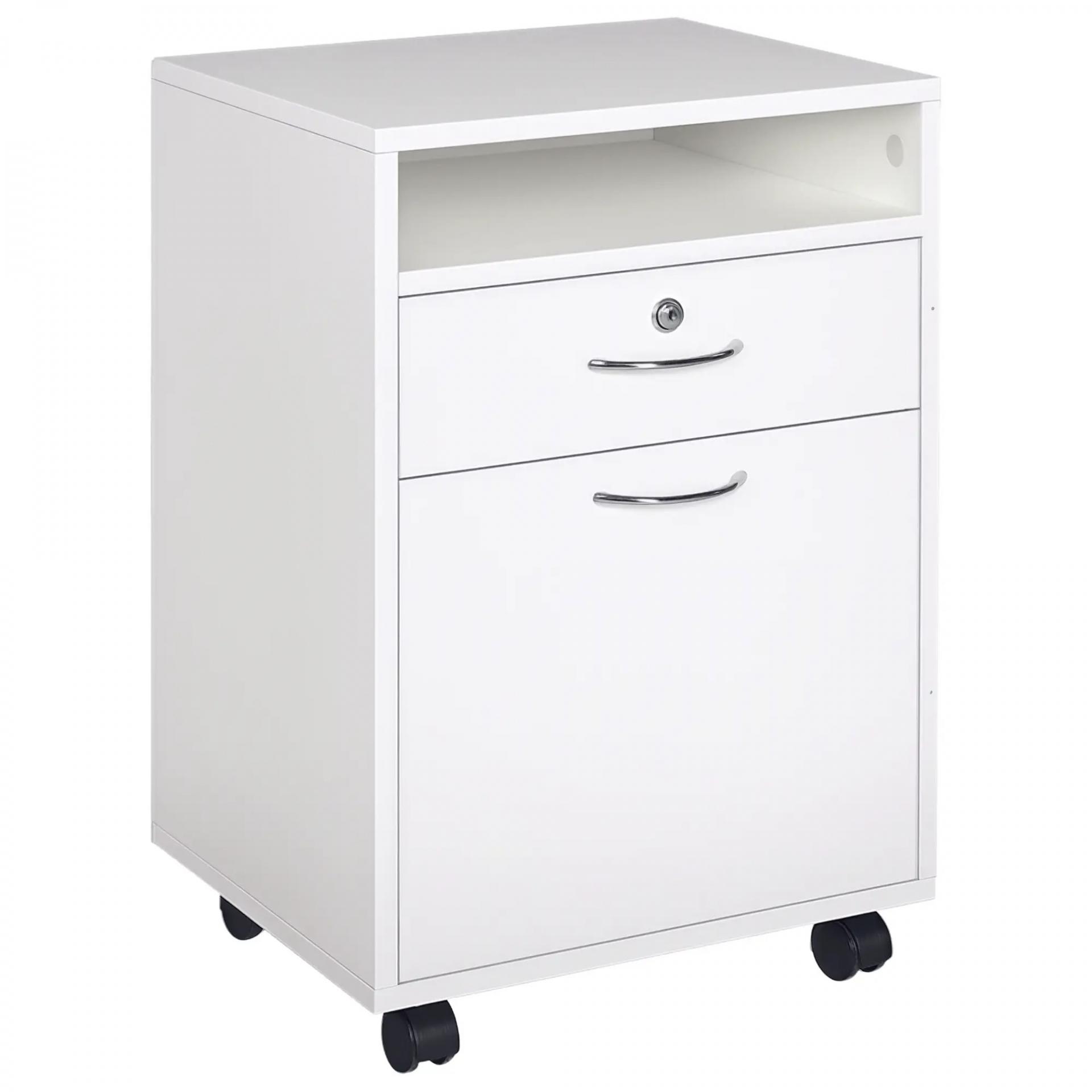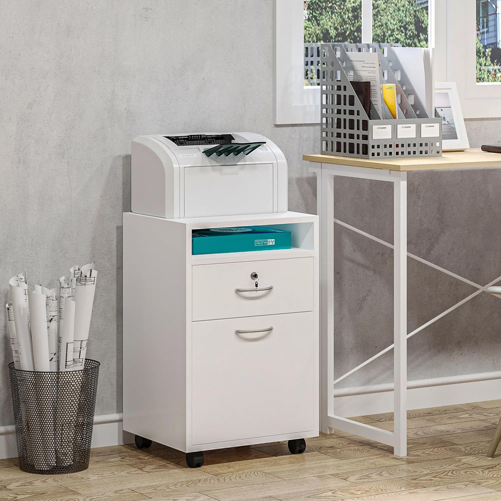 Cajonera de Oficina con Cajón con Cerradura y Armario con Ruedas Soporte de Impresora para Estudio 40x35x60 cm Blanco