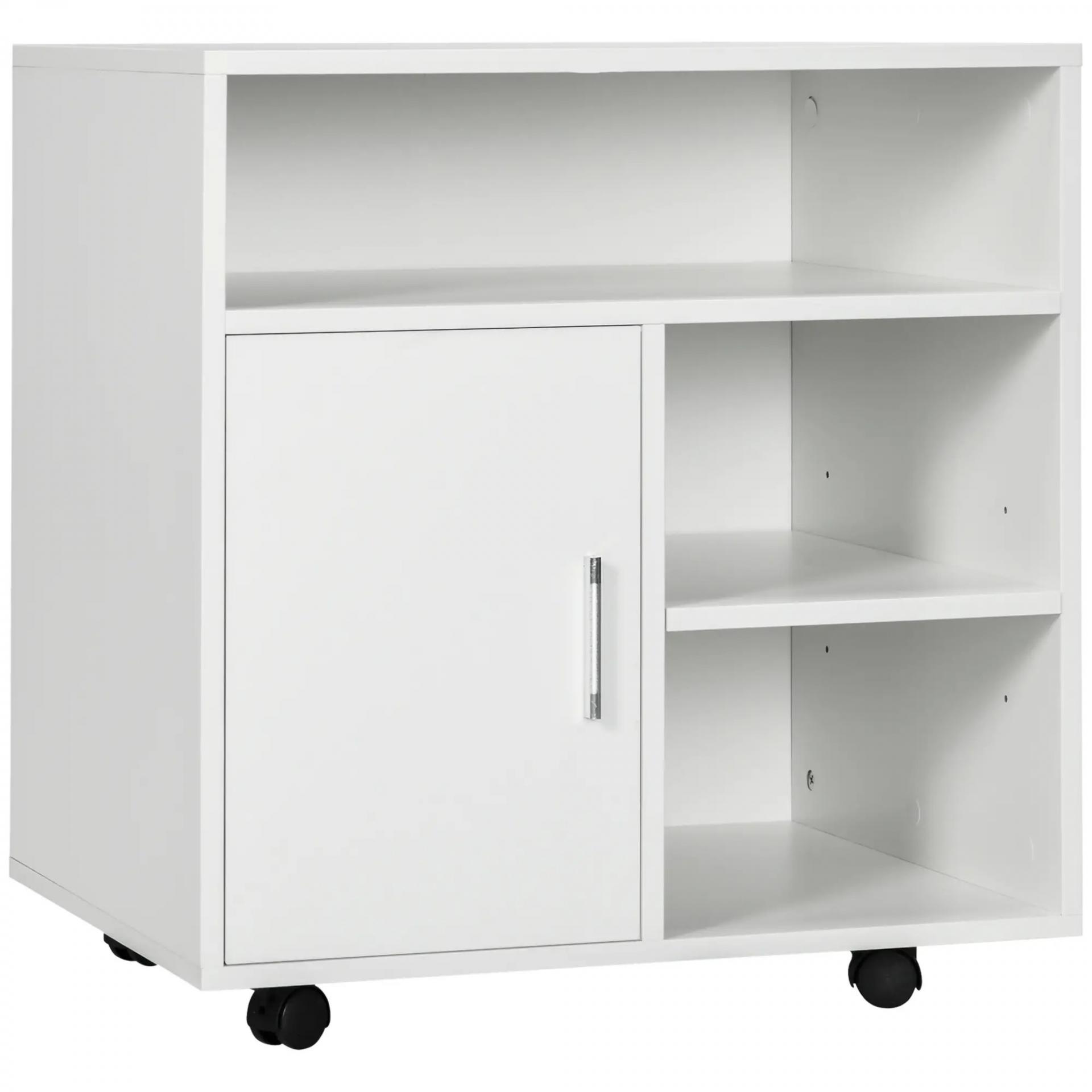 Mueble con Ruedas Armario de Oficina Multifuncional con Estantes con Amplio Espacio de Almacenaje 60x50x65,5 cm Blanco