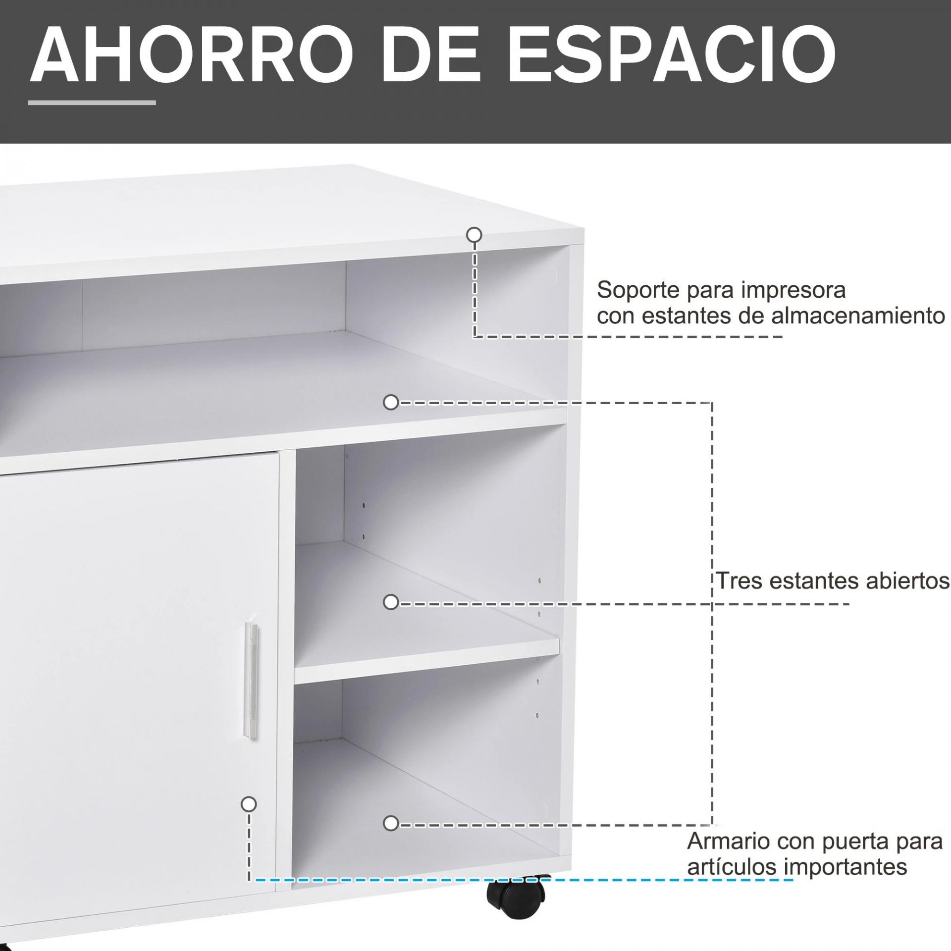 - ALMACENAMIENTO ORDENADO Y FUNCIONAL: Mantén tu espacio despejado con su amplia superficie para la impresora, tres compartimentos abiertos para papel y accesorios, y un armario cerrado que te permite guardar todo de forma ordenada y accesible
